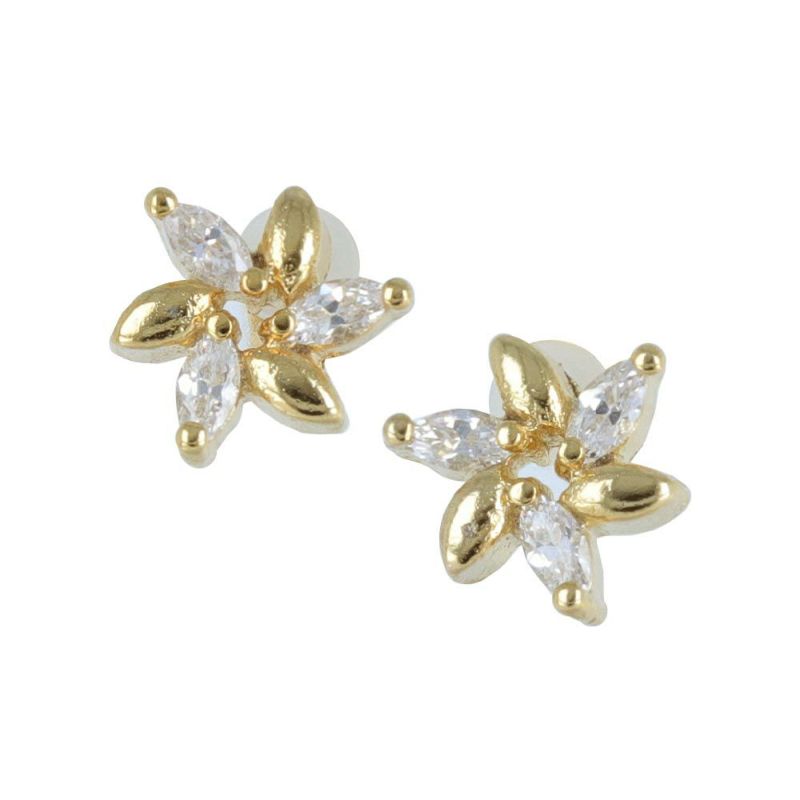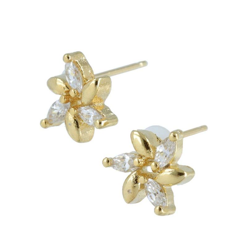 ピアス ニッケルフリー フラワー キュービックジルコニア 18金 K18 ポストピアス