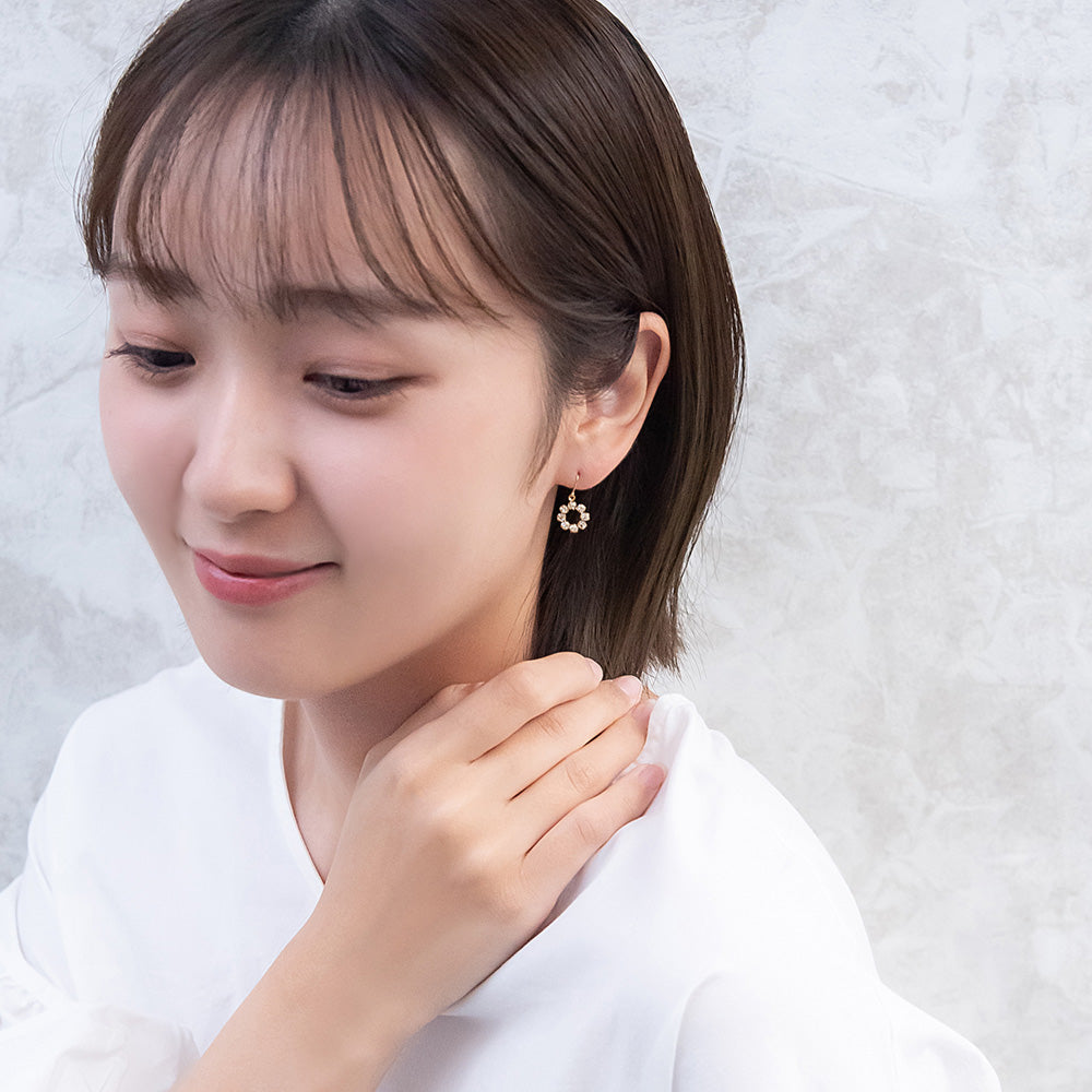 金属アレルギーが出にくいニッケルフリー&18金ポストでお肌に優しい作りになっています。※すべての方に金属アレルギー反応が出ないこと(アレルギーフリー)を保証するものではございません。 皮膚に異常を感じた場合は直ちにご使用を中止し、専門医にご相談ください。