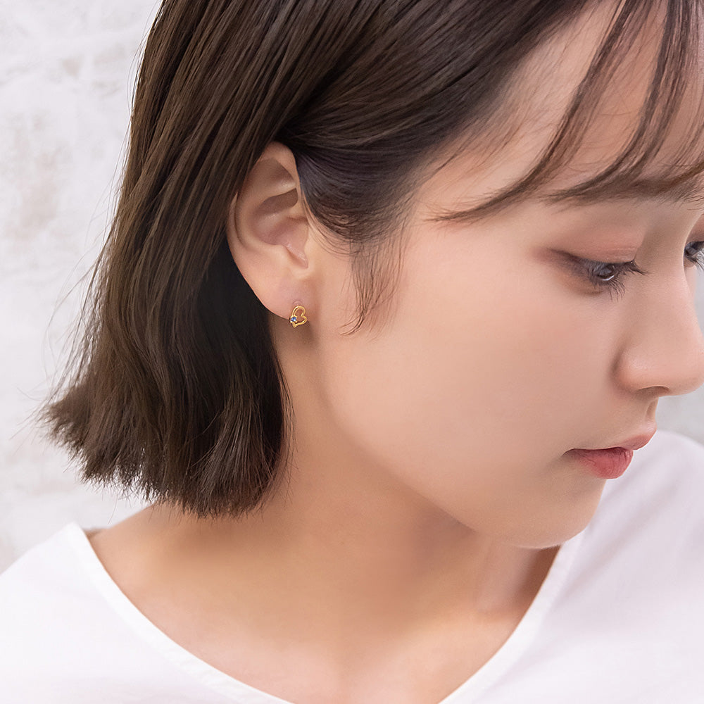 ピアス ニッケルフリー オープンハート カラー ストーン 18金 K18 ポストピアス