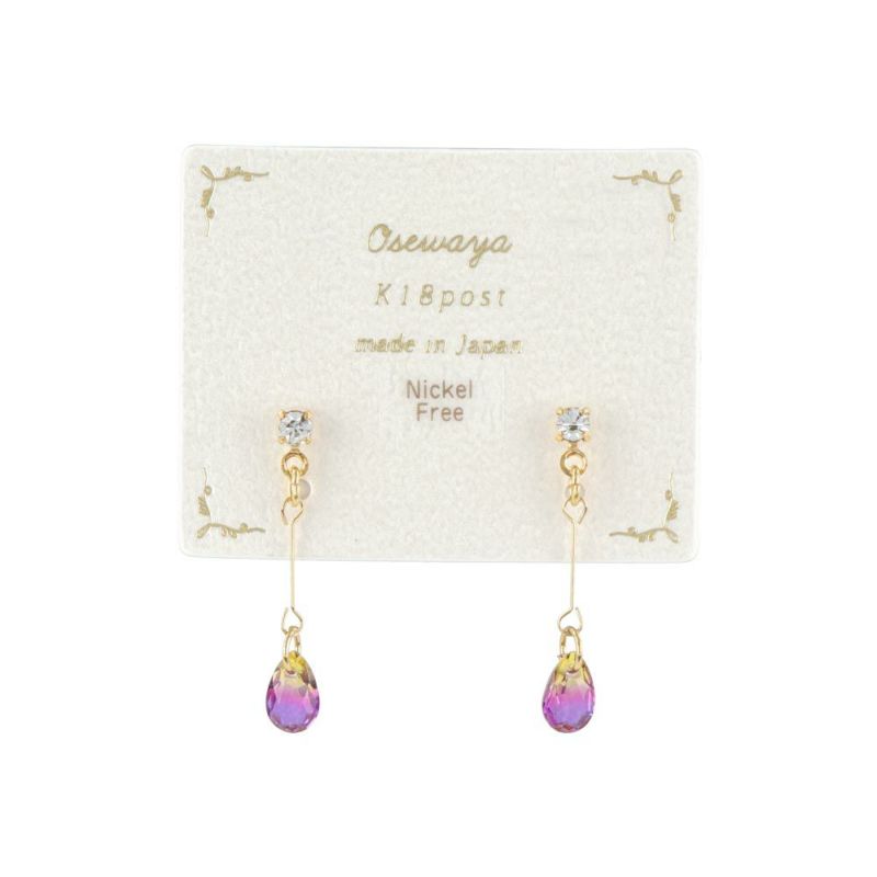 ピアス ニッケルフリー グラデーション ドロップ ストーン ワイヤー 18金 K18 ポストピアス