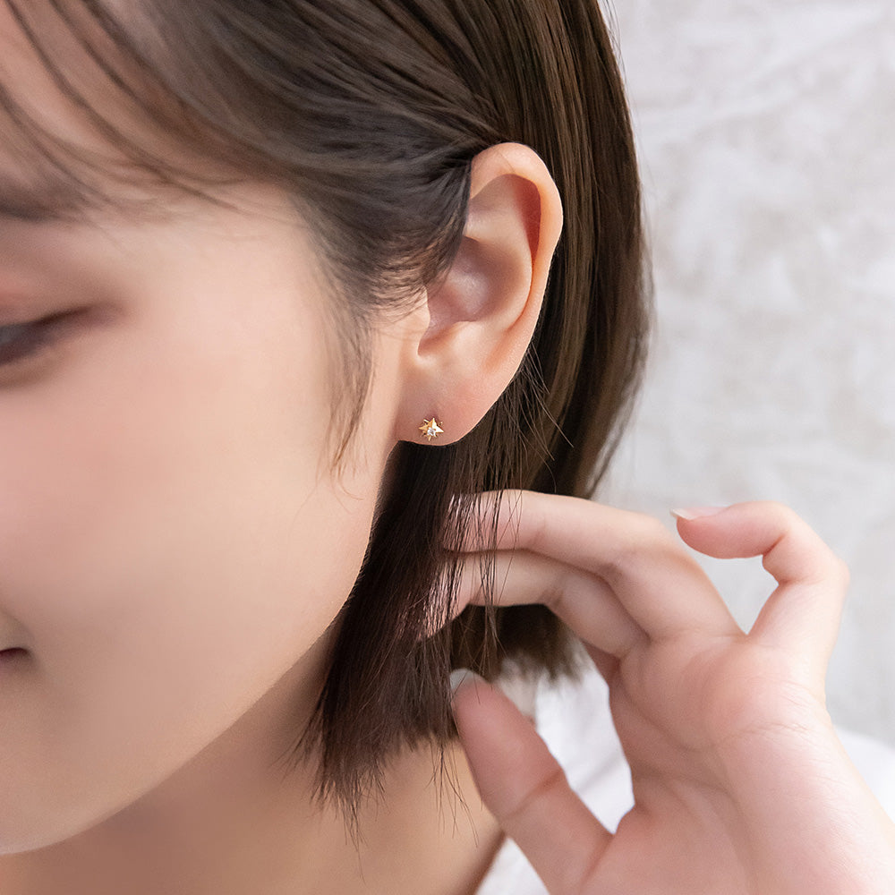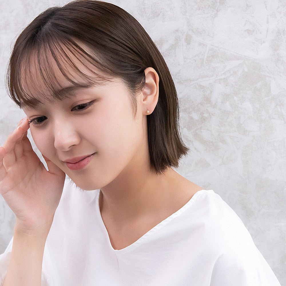 金属アレルギーが出にくいニッケルフリー&18金ポストでお肌に優しい作りになっています。耳とモチーフが直接触れないためのシリコンガード付きです。※すべての方に金属アレルギー反応が出ないこと(アレルギーフリー)を保証するものではございません。 皮膚に異常を感じた場合は直ちにご使用を中止し、専門医にご相談ください。