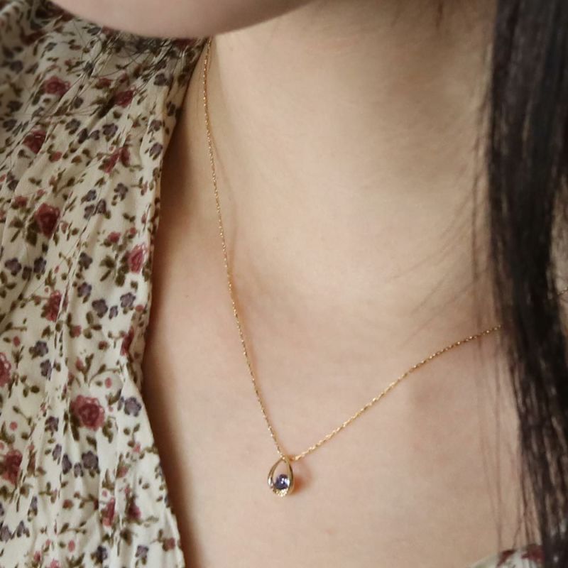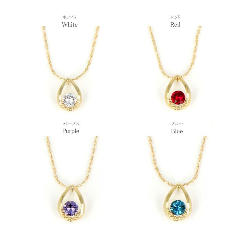 ネックレス ニッケルフリー ティアドロップ カラーストーン プチネックレス