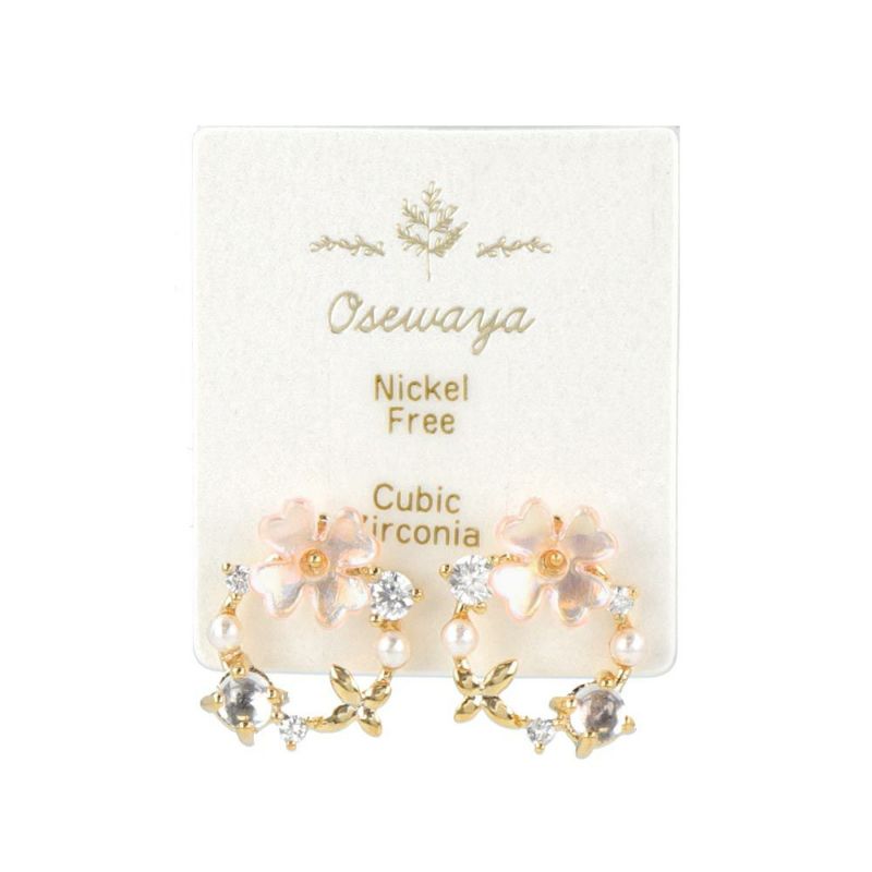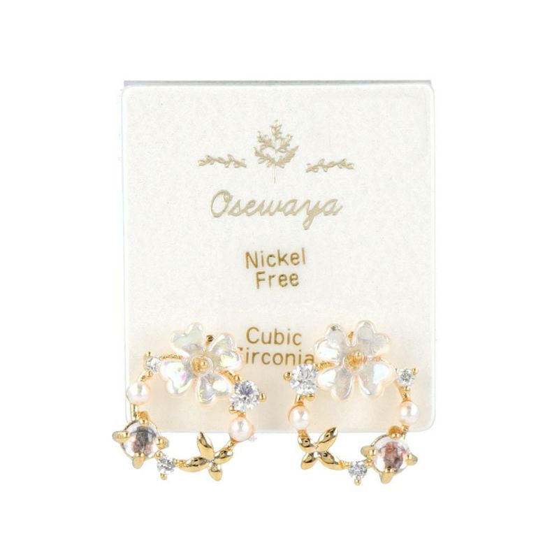 ピアス ニッケルフリー フラワー パール キュービックジルコニア サークル ポストピアス