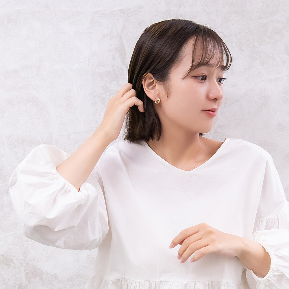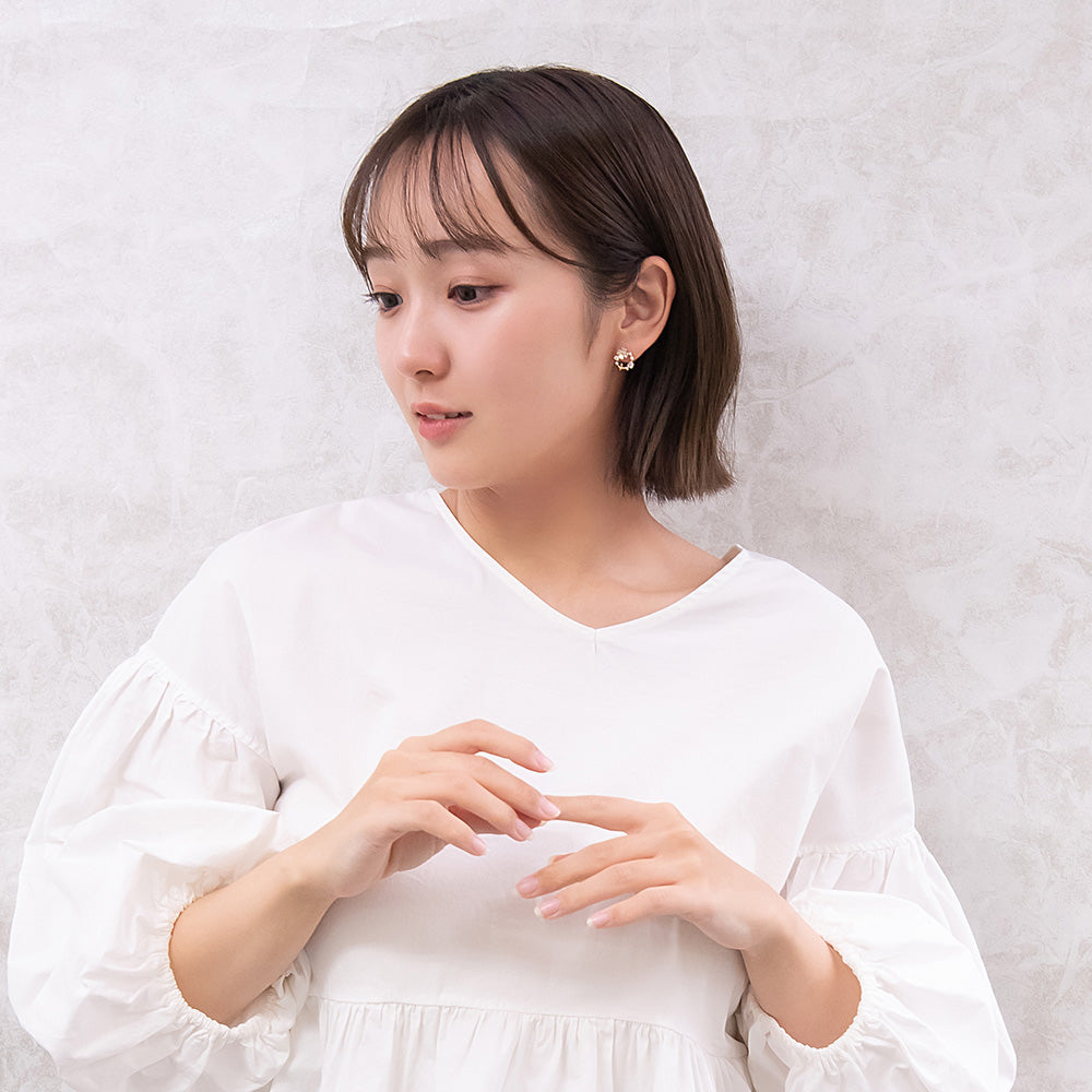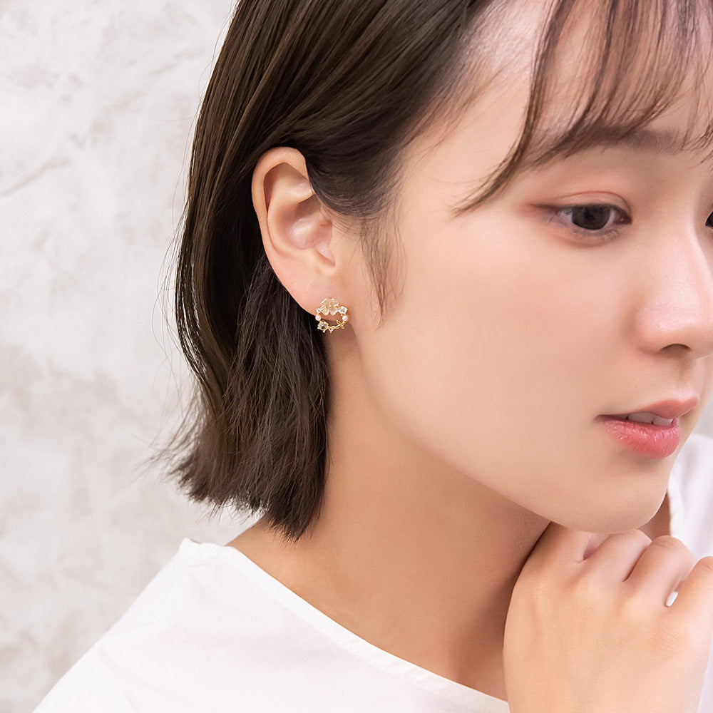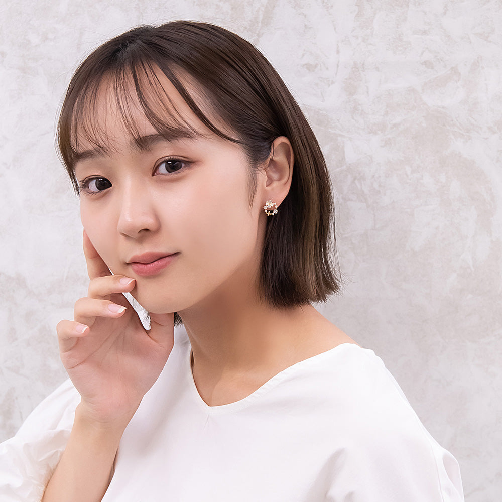お花モチーフがロマンチックなピアスは、ミニサイズで甘さひかえめ。