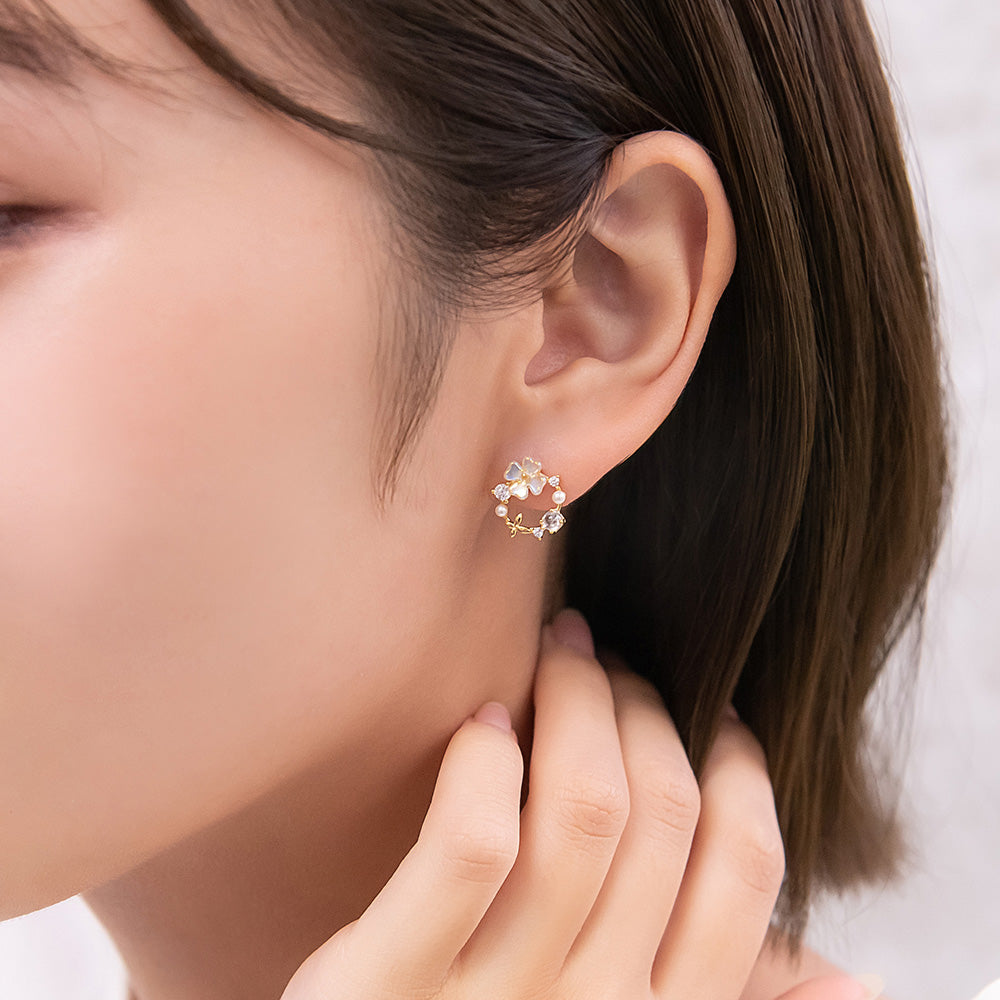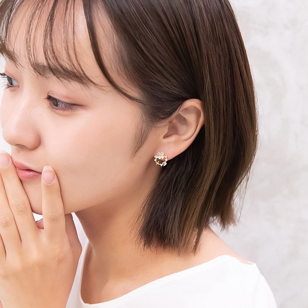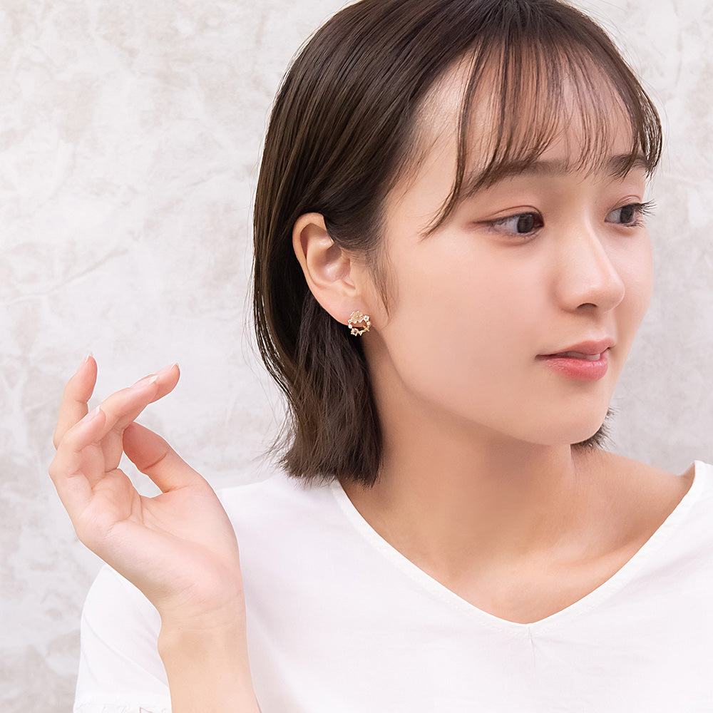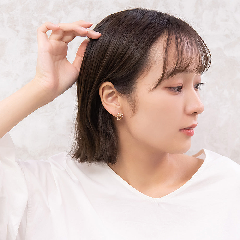 お花モチーフがロマンチックなピアスは、ミニサイズで甘さひかえめ。
