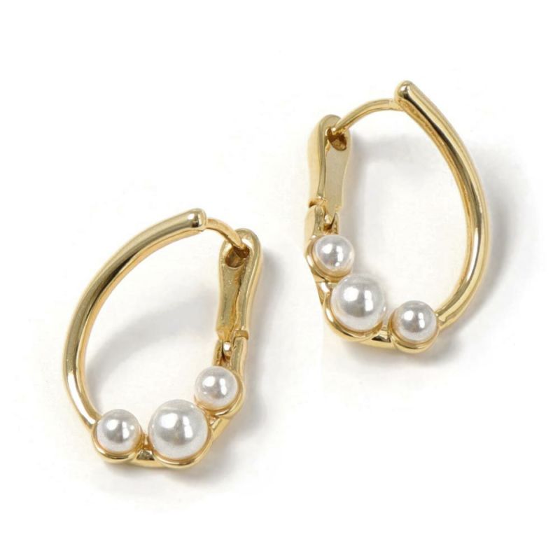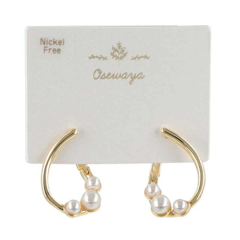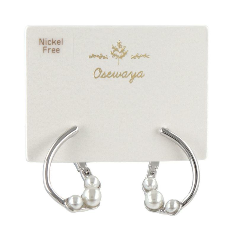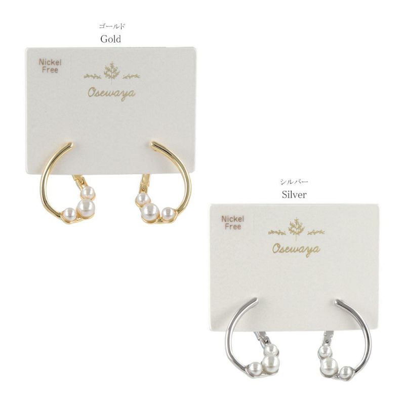 ピアス ニッケルフリー メタル カーブ スリー パール フープピアス