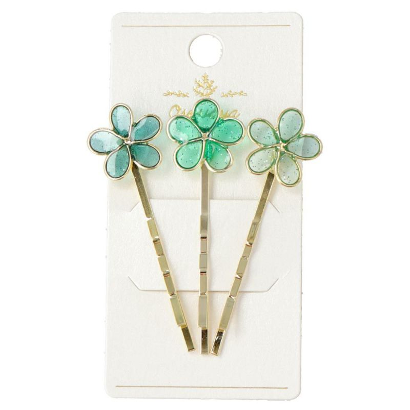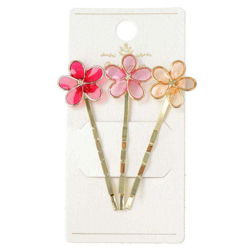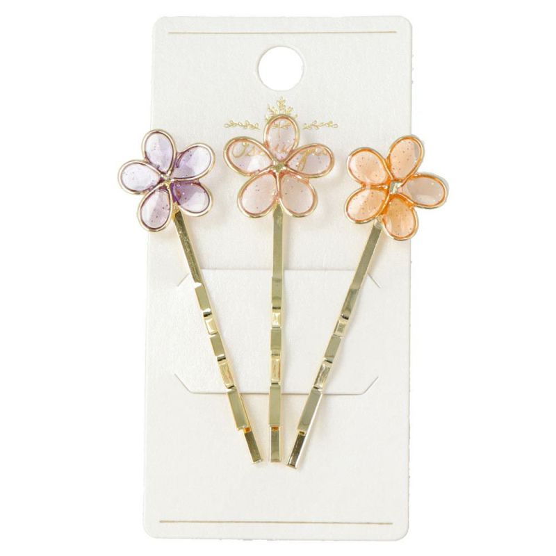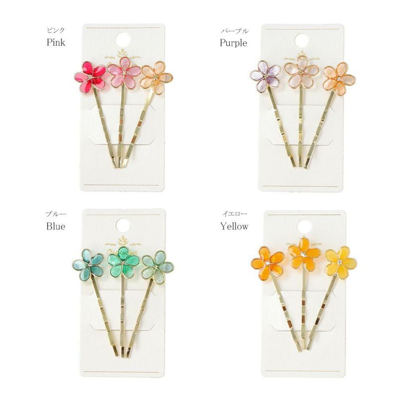 ヘアピン クリア カラー フラワー アメピン 3本セット