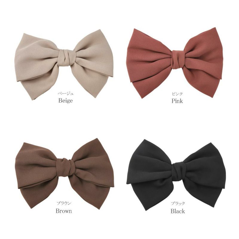 雰囲気のあるくすみカラーで甘すぎない、ビッグシルエットのリボンバレッタ。すべり止めつきの薄型タイプで、毛量少なめ・猫っ毛さんに特におすすめです。