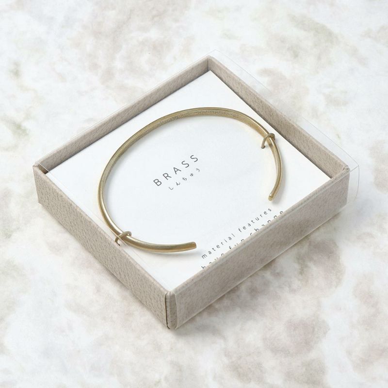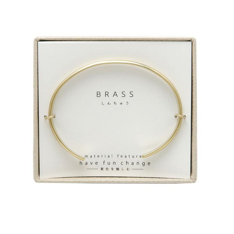 ブレスレット 経年変化 BRASS しんちゅう シンプル ハーフバングル ニッケルフリー ケース入り