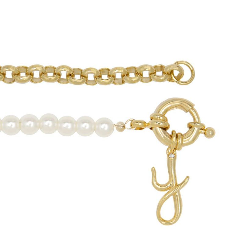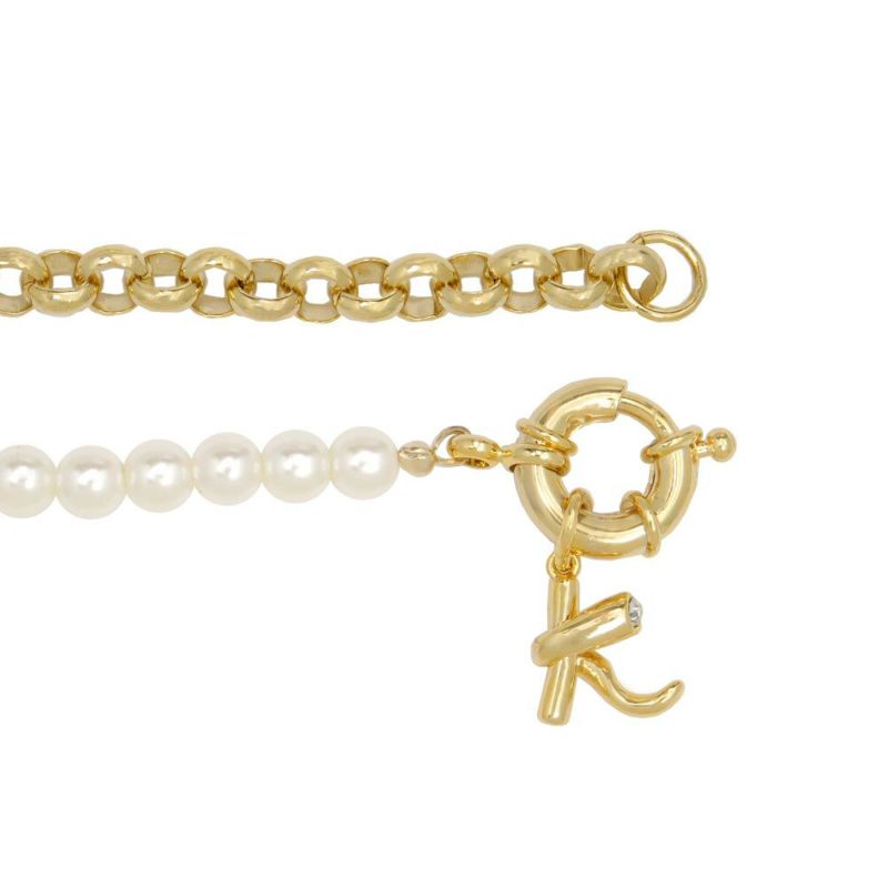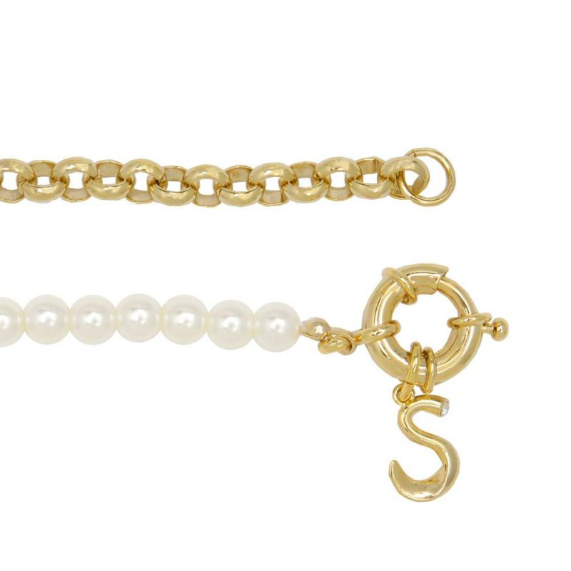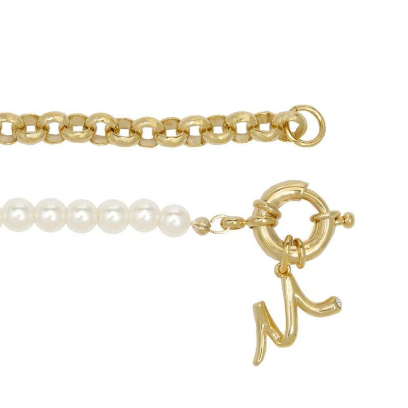 ブレスレット ニッケルフリー イニシャル パール チェーン ストーン チェーンブレスレット