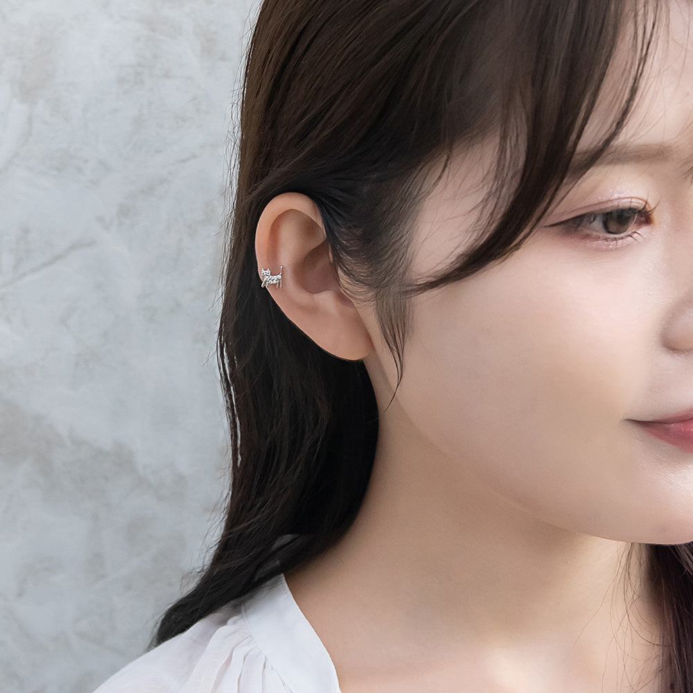 ボディピアス ネコ キャット キュービックジルコニア ストレートバーベル ネジ式 サージカルステンレス 18G 【1個販売】