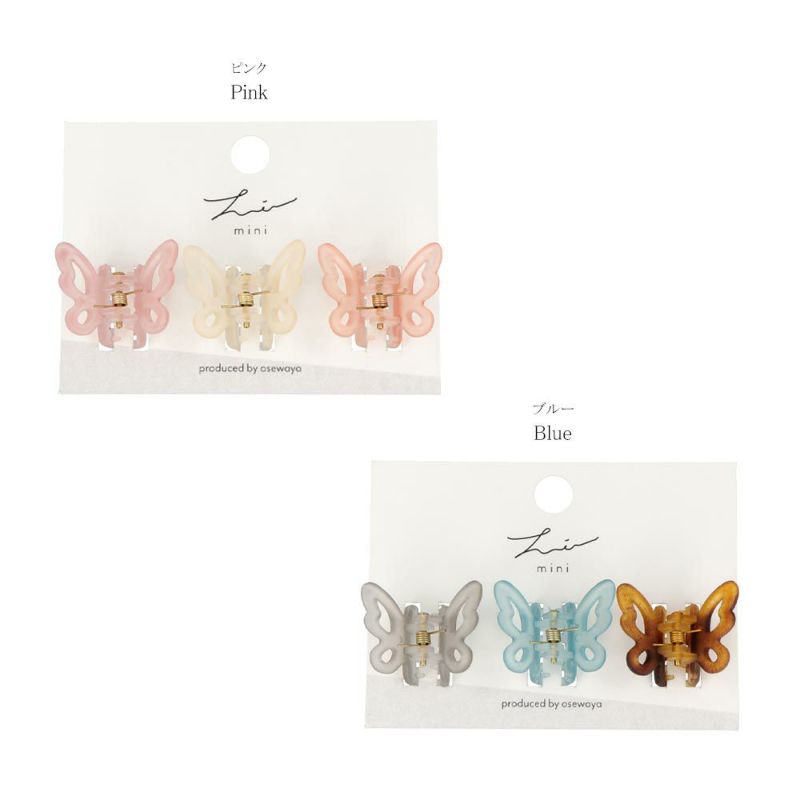 ヘアクリップ カラー バタフライ 3個セット ミニ バンスクリップ