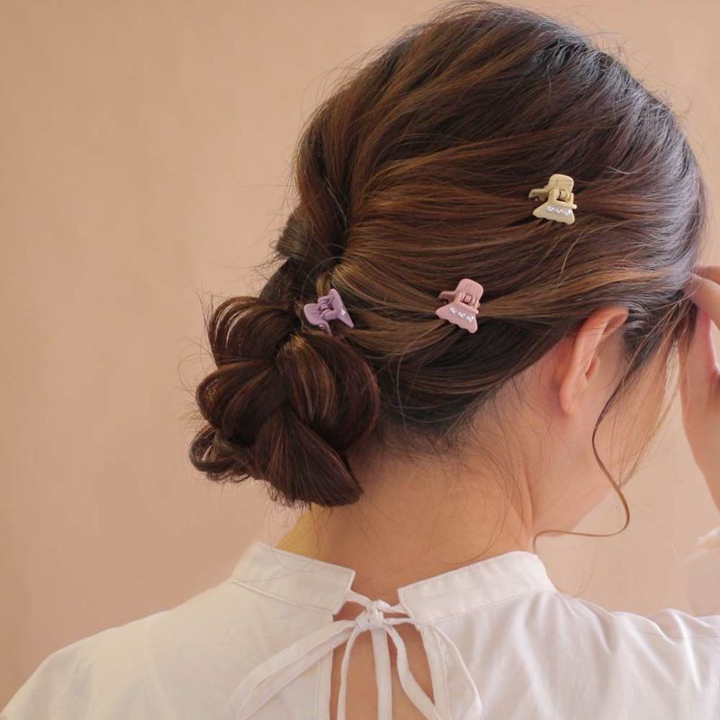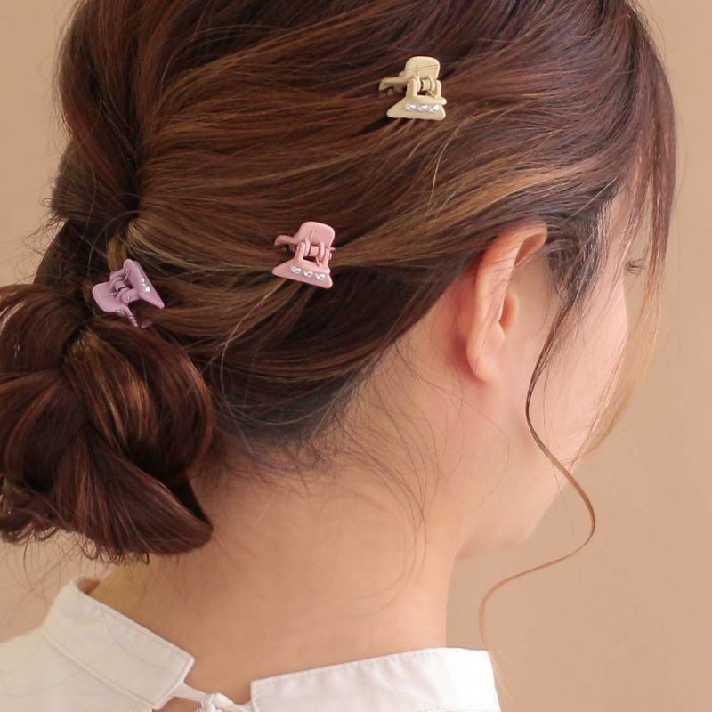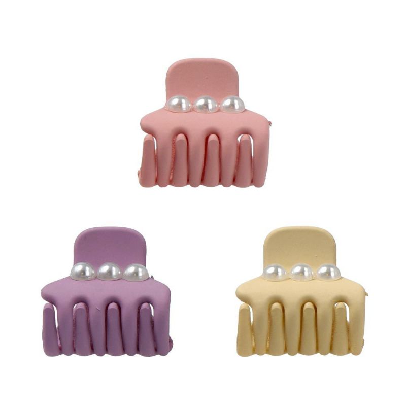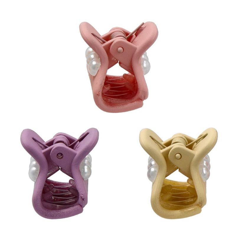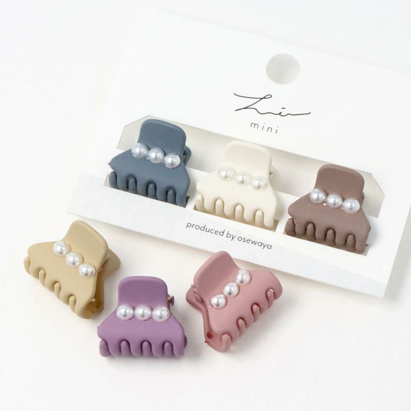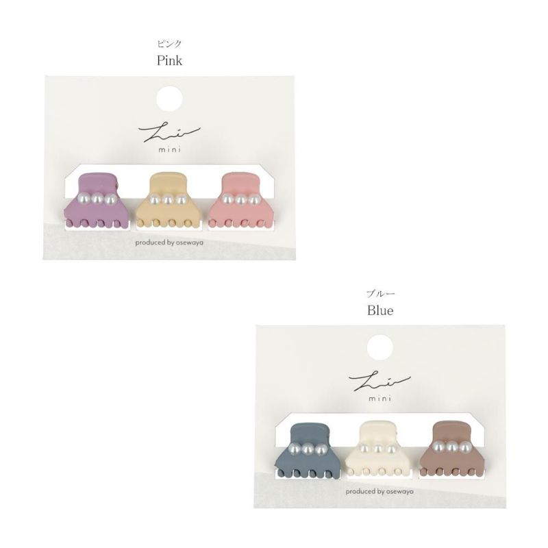 ヘアクリップ カラー トリプル パール 3個セット ミニ バンスクリップ