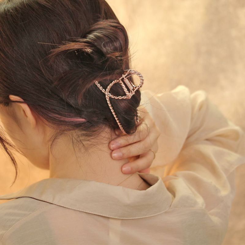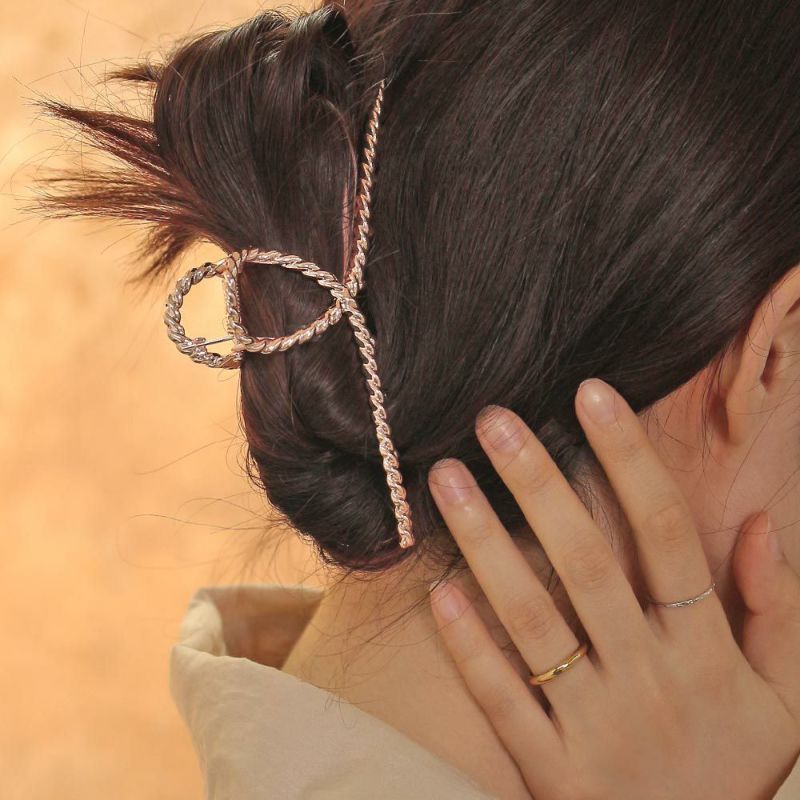 bs0390ピンクゴールドカラーで大人可愛いロールバンスクリップ。メタル素材のアイテムで抜け感のあるまとめ髪に。可愛いだけじゃなく、ざっくりまとめてお洒落にきまるヘアクリップ。気軽に韓国風ヘアスタイルになれるジッケピンは、ねじって留めるだけでOK!