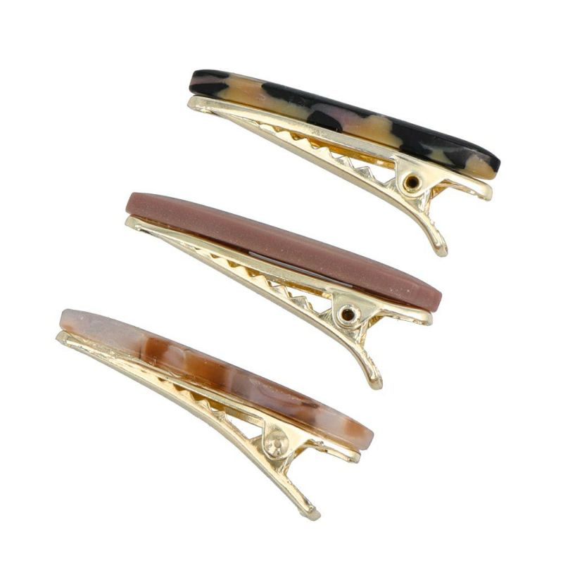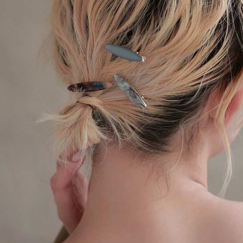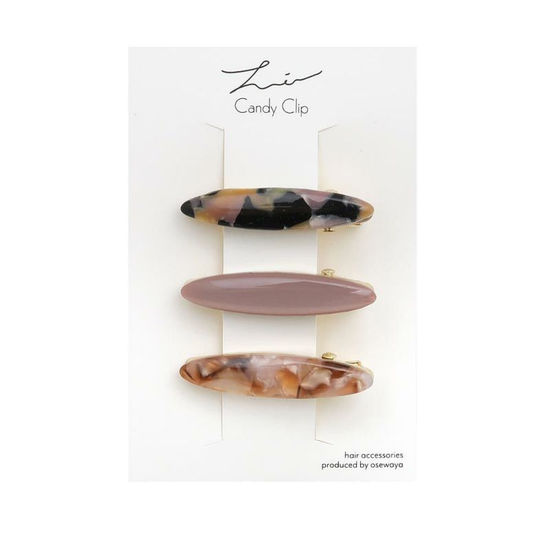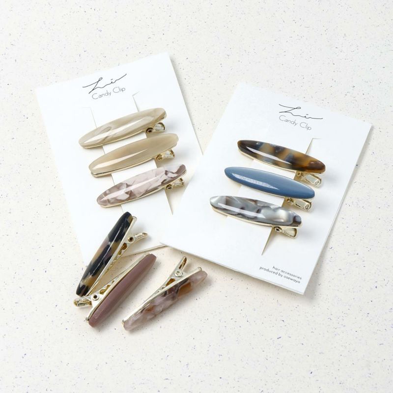 ヘアクリップ マーブル 樹脂 オーバル ミニクリップ 3個セット