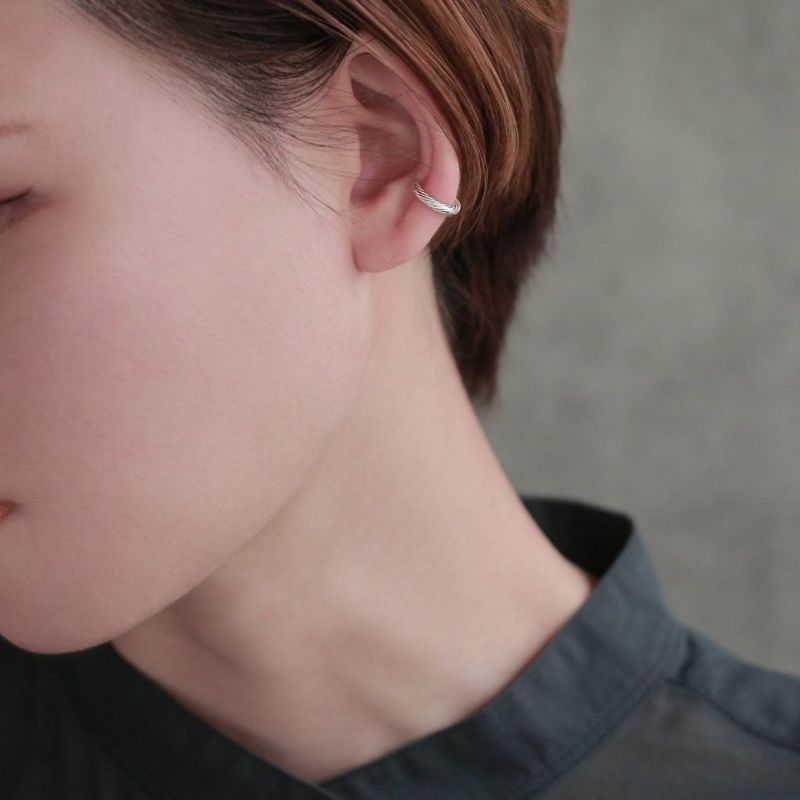 イヤーカフ ニッケルフリー シンプル 彫 クリアコーティング シルバー925 イヤリング 【片耳用】