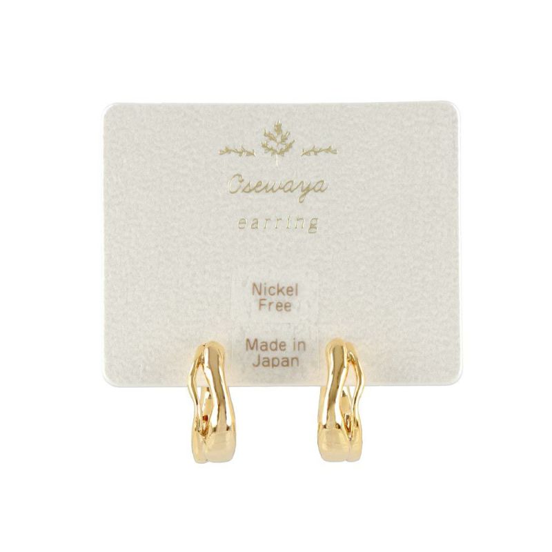 イヤリング ニッケルフリー メタル ウエーブ ライン 2連風 クリップ イヤリング