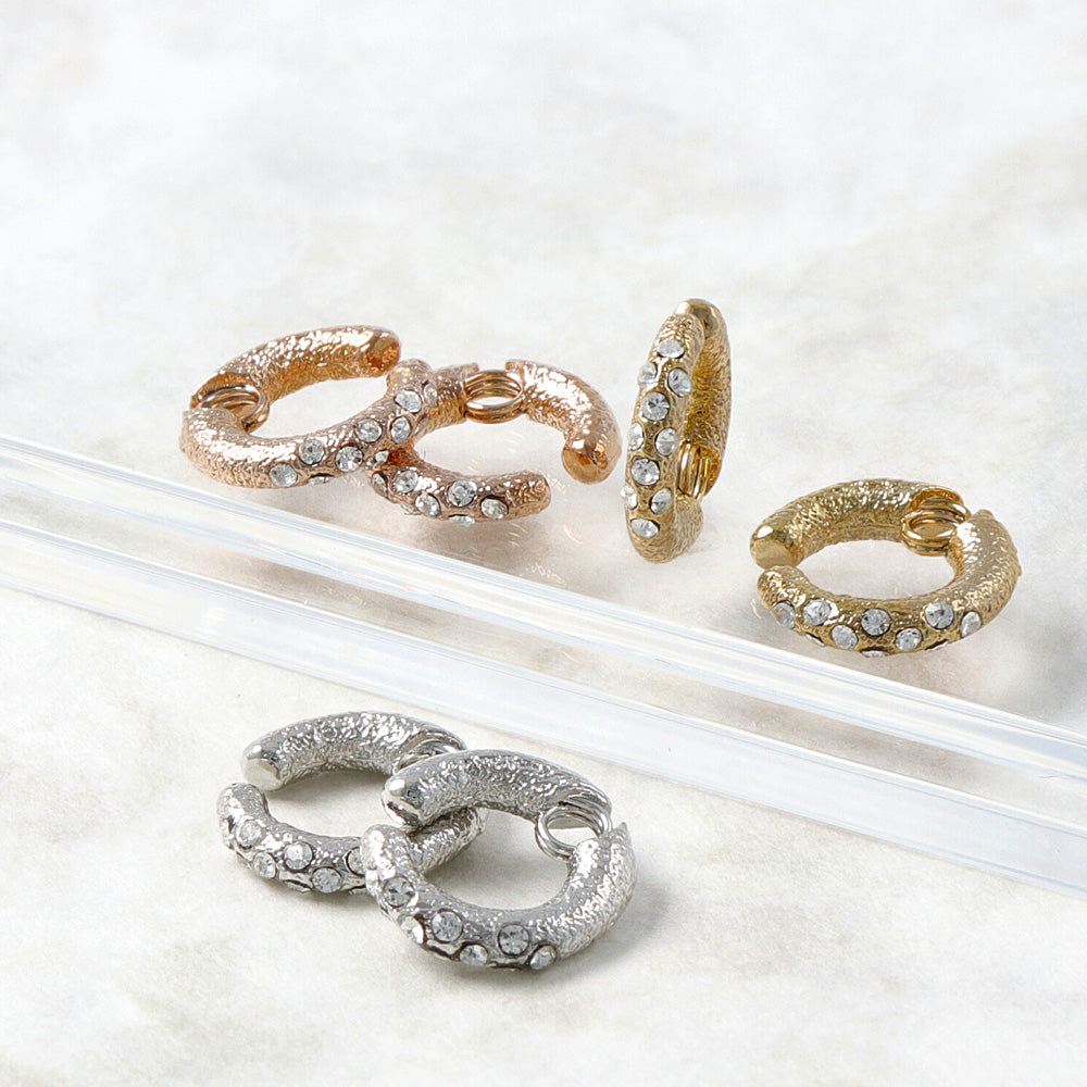 イヤリング ニッケルフリー メタル 梨地 ランダム ストーン クラッチイヤリング フープイヤリング