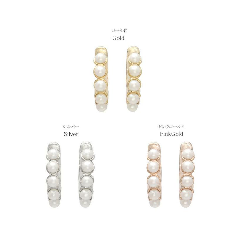 イヤリング ニッケルフリー メタル パール ライン クラッチイヤリング フープイヤリング