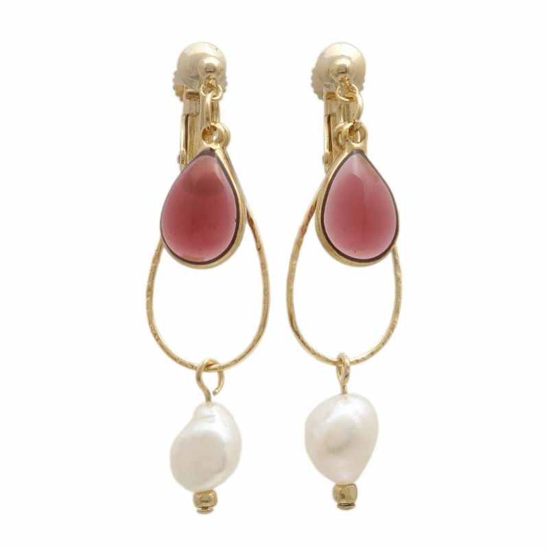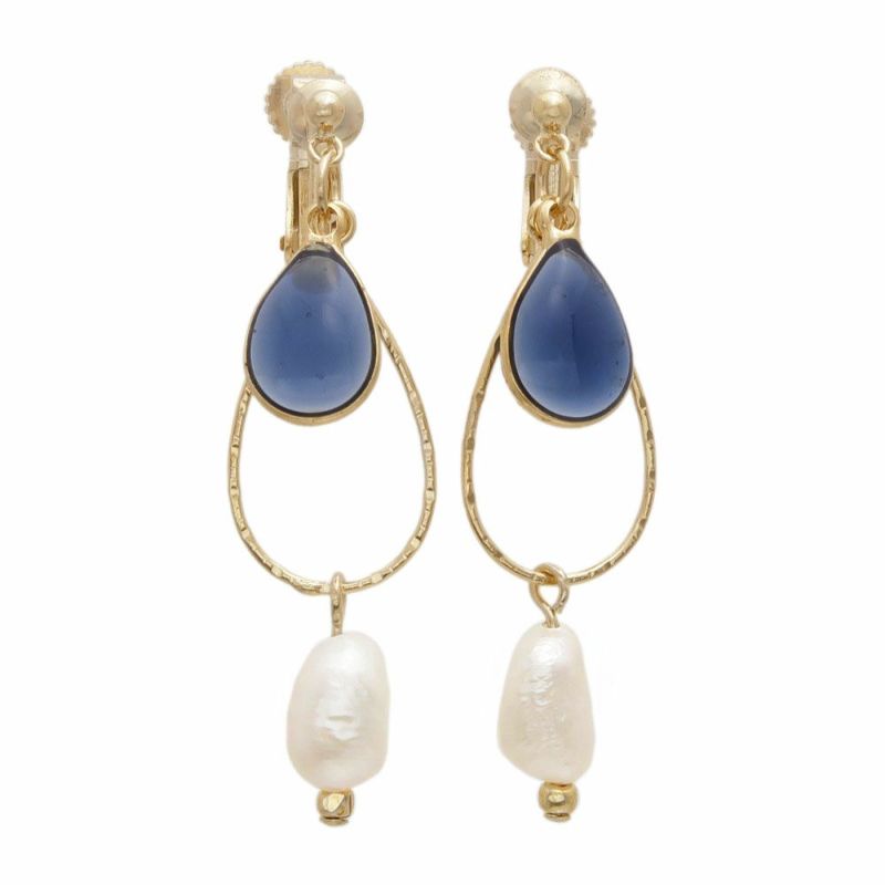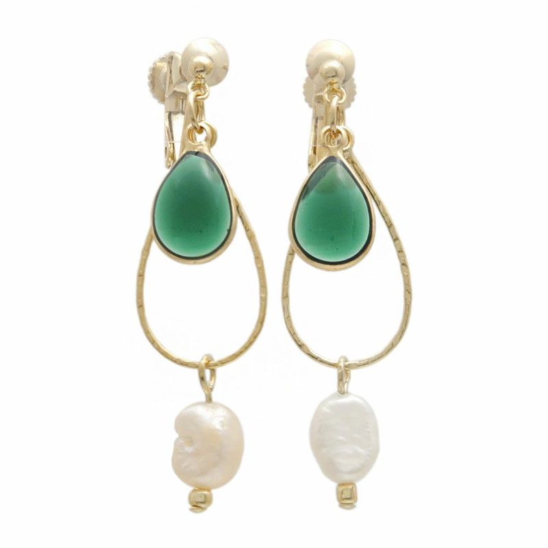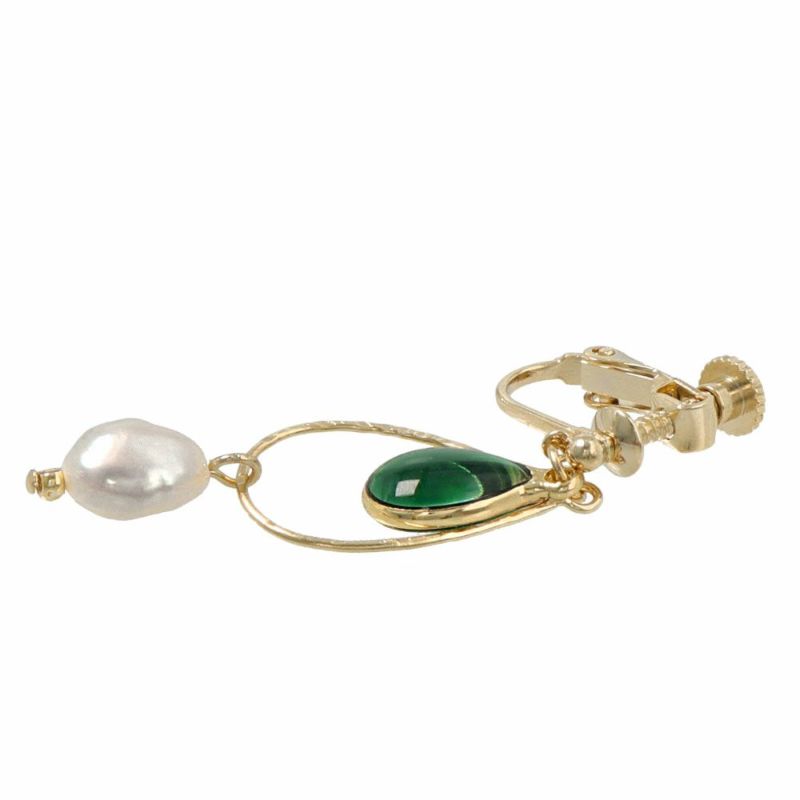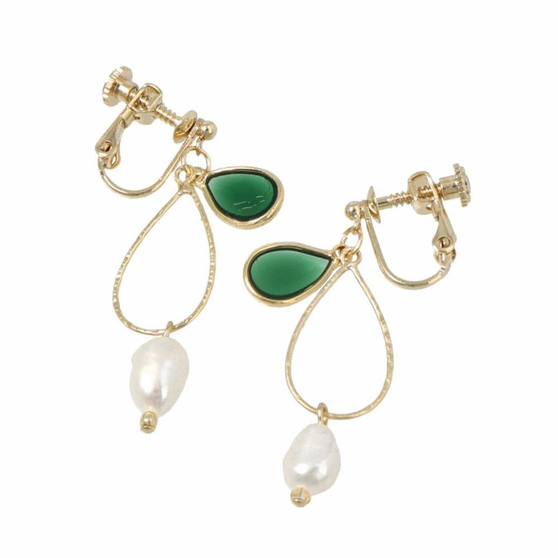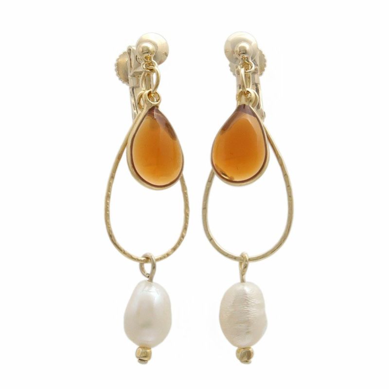 イヤリング ニッケルフリー メタル ドロップ クリアカラー 淡水パール ネジバネ式イヤリング