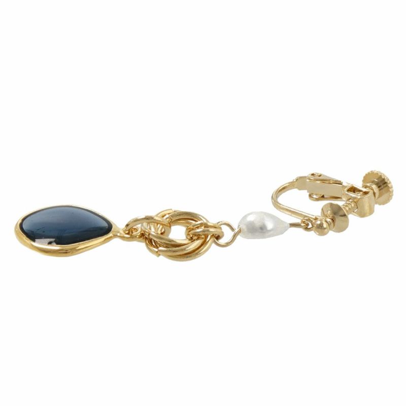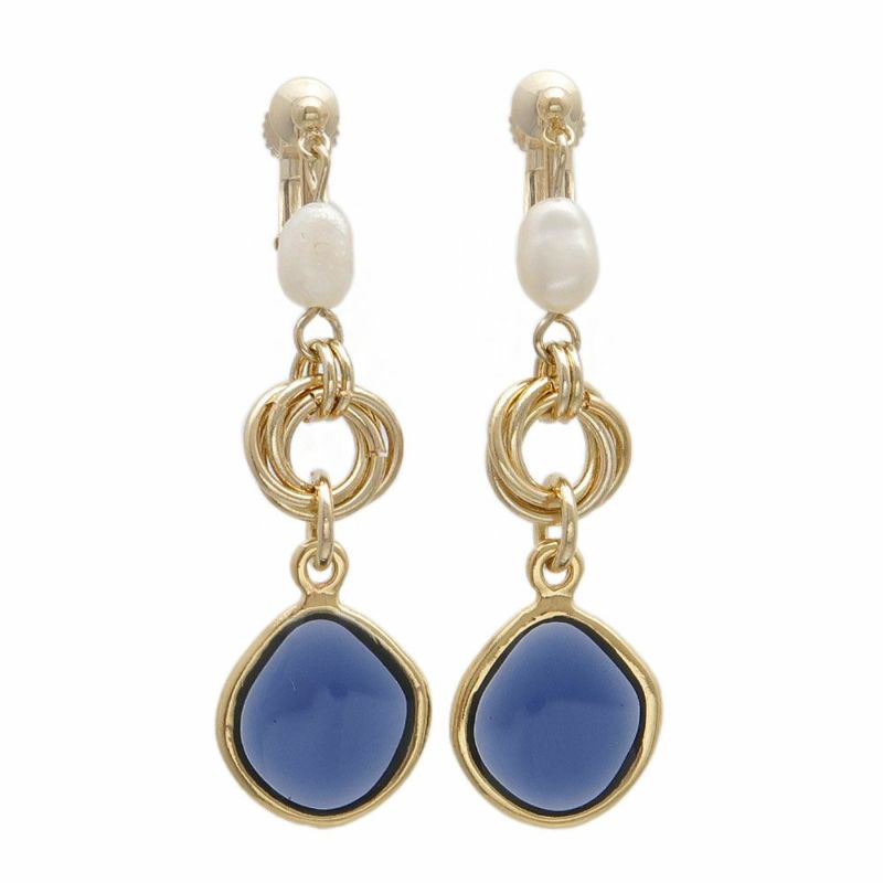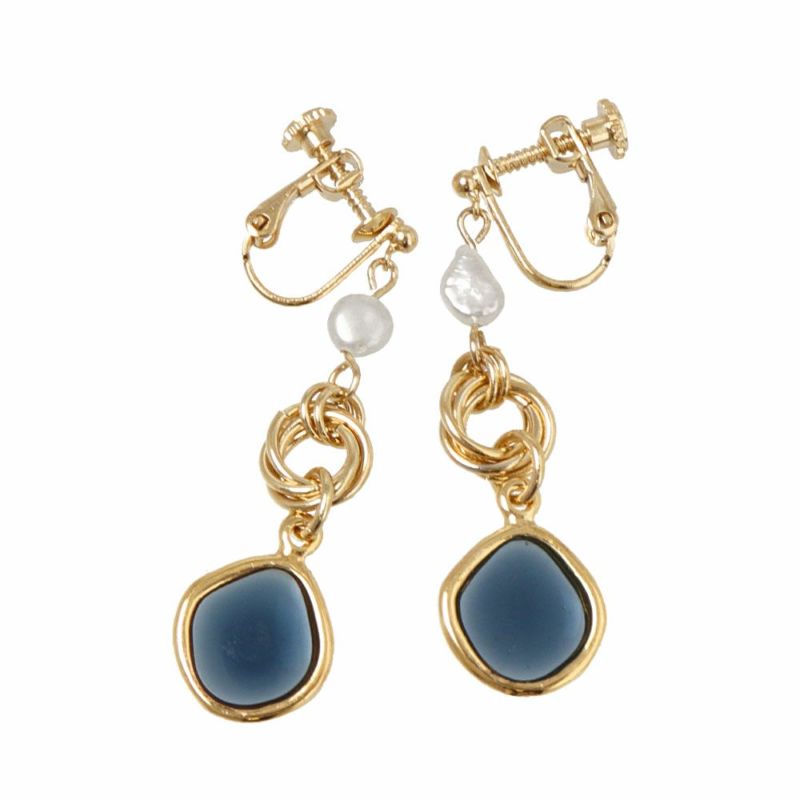 イヤリング ニッケルフリー メタル チェーン クリアカラー 淡水パール ネジバネ式イヤリング