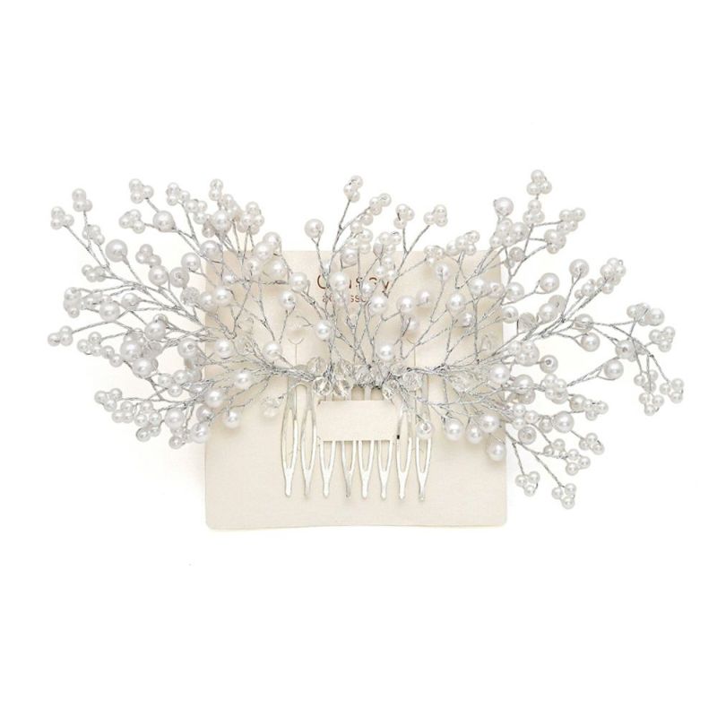 Classy コーム ニッケルフリー スパークル パール クリアビーズ ワイヤー ヘアコーム