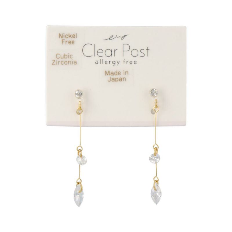 日本製、真鍮、キュービックジルコニア、ガラス、樹脂ポスト