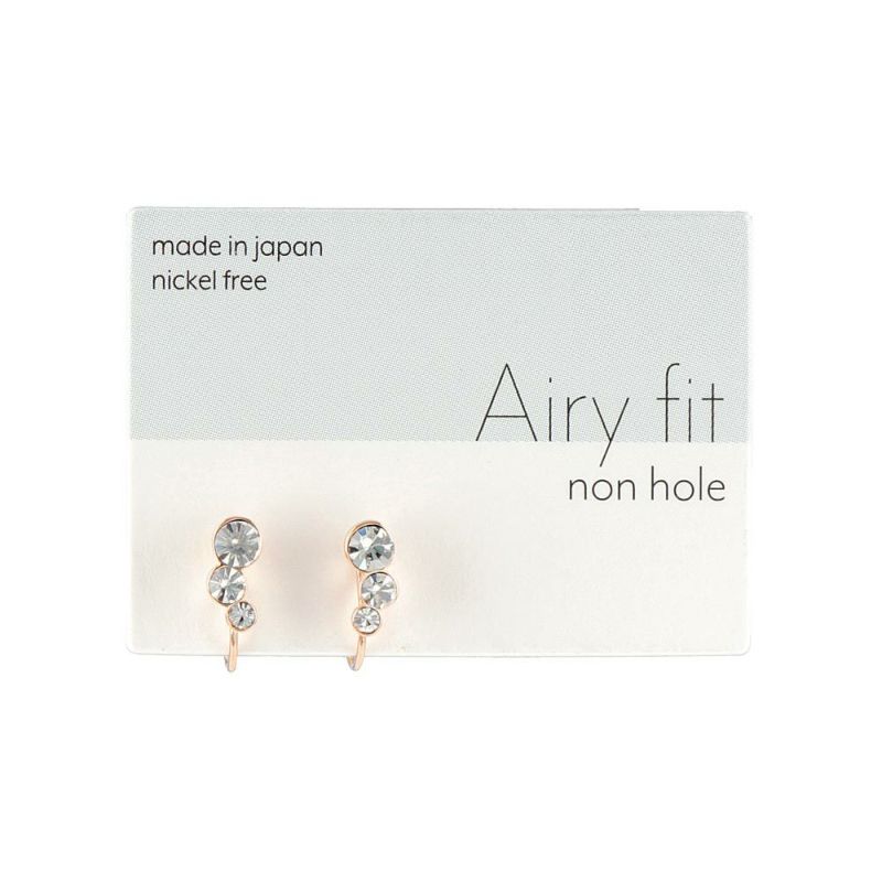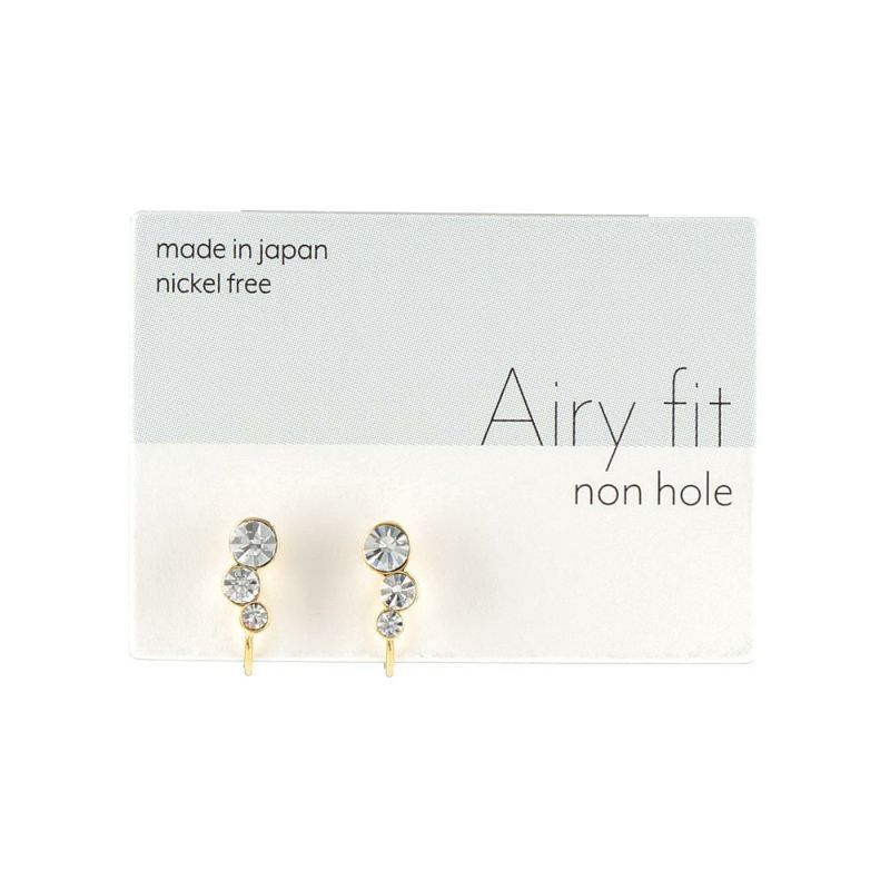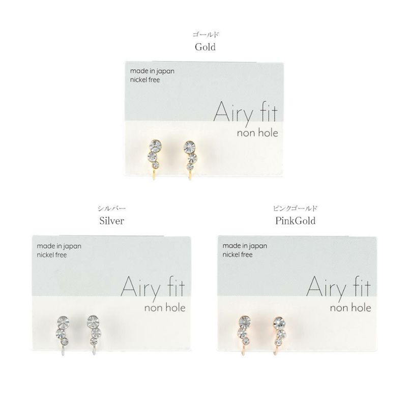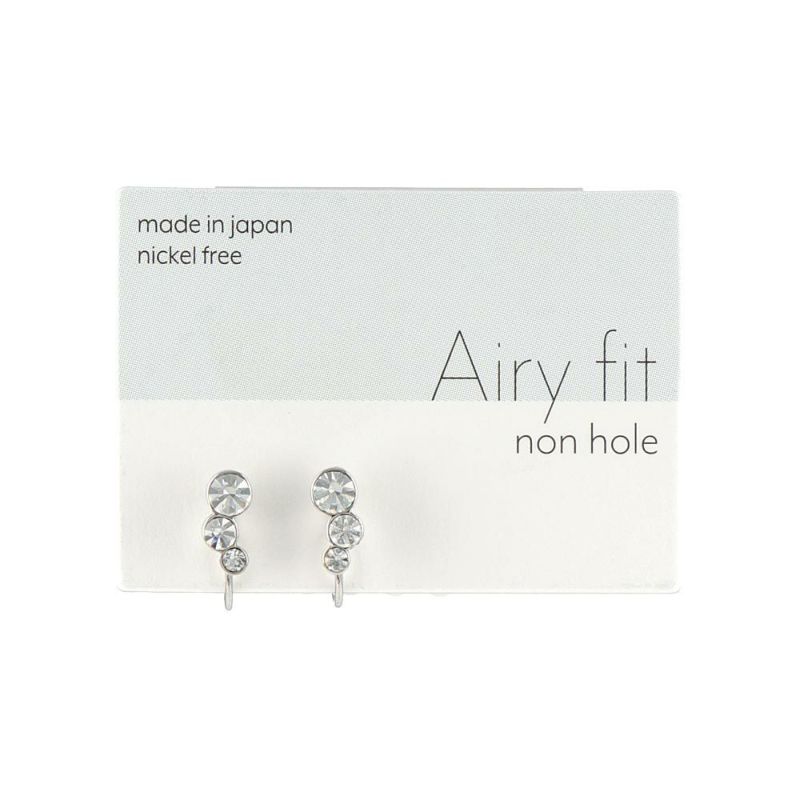 ノンホールピアス ニッケルフリー トリプル ストーン メタル フレーム サークル カーブ エアリーフィットノンホール シリコンカバー付き イヤリング