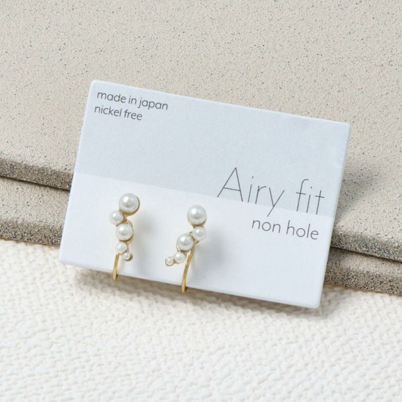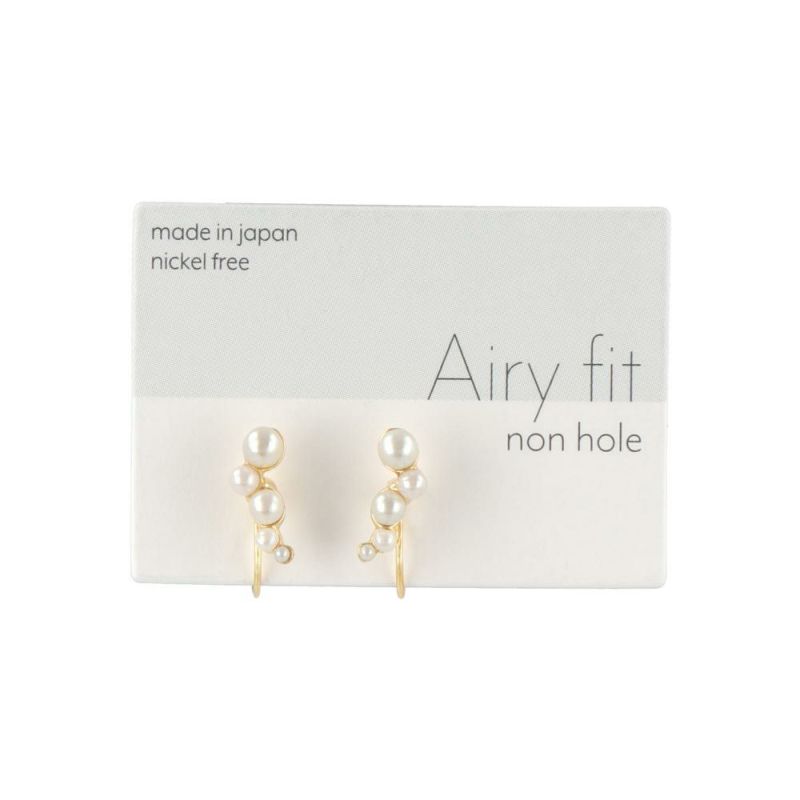 ノンホールピアス ニッケルフリー ライン パール エアリーフィットノンホール シリコンカバー付き イヤリング