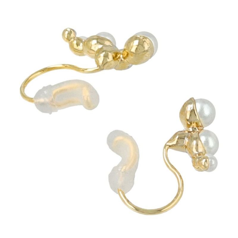 お肌に優しい華奢な金具を使用した軽いつけ心地、ノンホールピアスの進化系アイテム。耳にぴったりフィットするので横から見ても自然でスッキリと見えます。また、シリコンカバーがクッションになり長時間装着していても痛くなりにくく、落ちにくい仕様になっています。