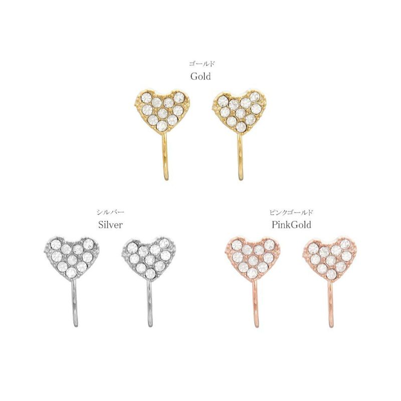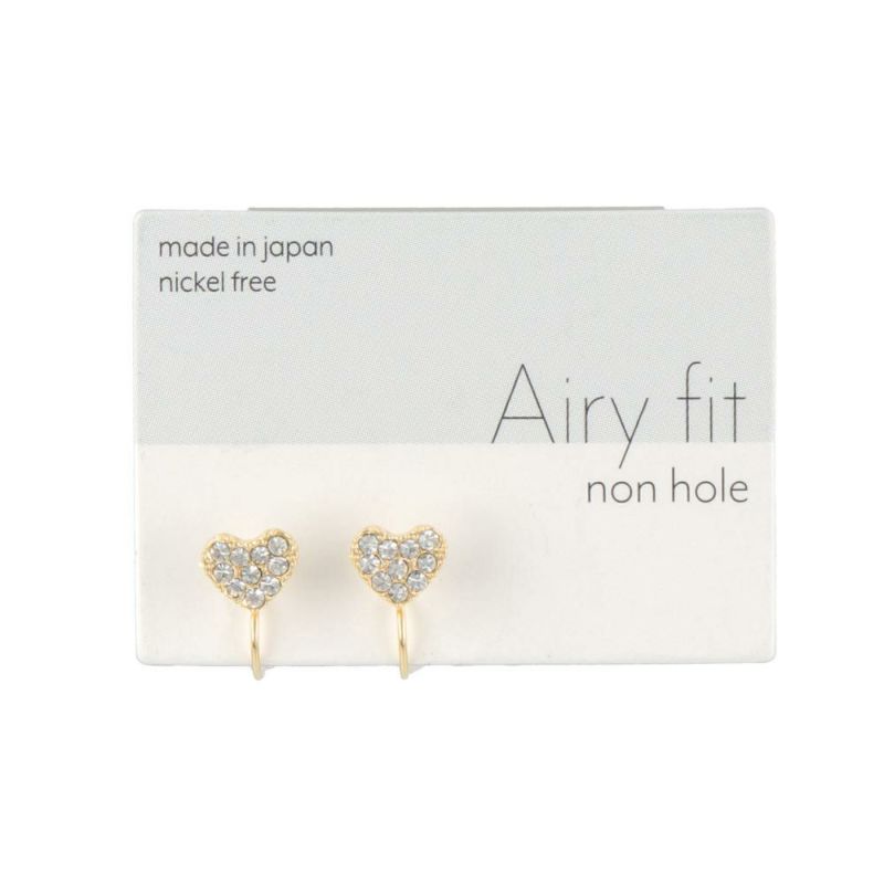 ノンホールピアス ニッケルフリー ハート ストーン パヴェ エアリーフィットノンホール シリコンカバー付き イヤリング