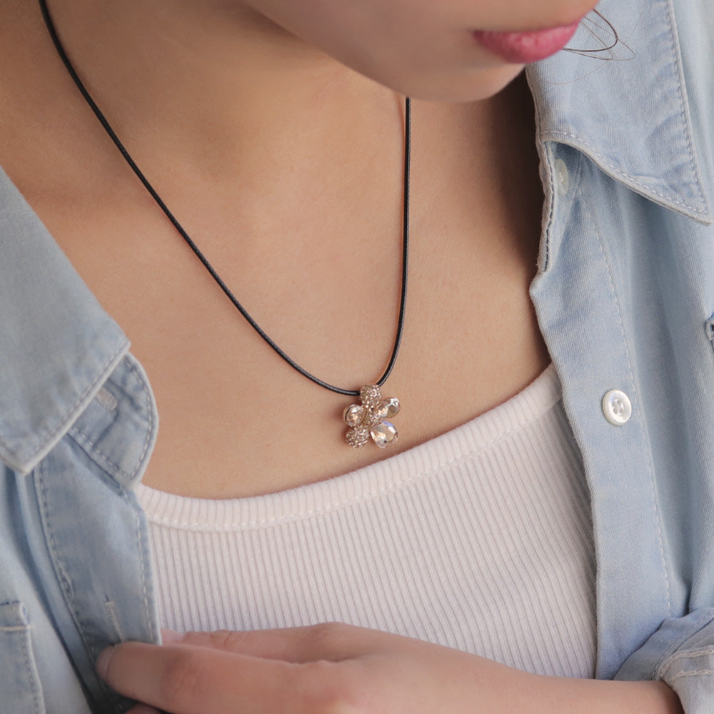 ネックレス ニッケルフリー ガラス パヴェ ストーン クリアカラー フラワー コード マグネット ショートタイプ ペンダントネックレス