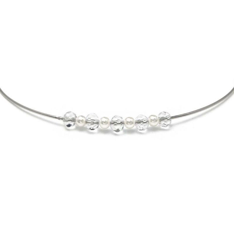ネックレス ニッケルフリー ミニ クリア ビーズ パール メタル チョーカー