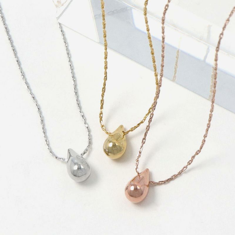 シンプルで小さめの立体的なドロップ型のワントップがさりげなくきらりと煌めくプチネックレス。デイリーはもちろんオフィス等でも付けられるサイズ感が魅力的、華奢なチェーンにミニサイズのモチーフが可愛く添えられた上品なデザイン。留め具部分は、お出掛け前にパチッと留めるだけで簡単に装着できるマグネットタイプで取り外しにも時間がかからず便利なアイテム。