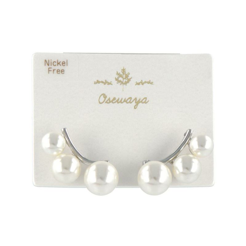 ピアス ニッケルフリー トリプル パール カーブ メタル スタッドピアス