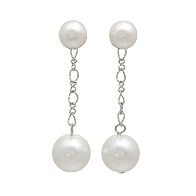 ピアス ニッケルフリー ダブル パール チェーン チタンポスト スタッドピアス