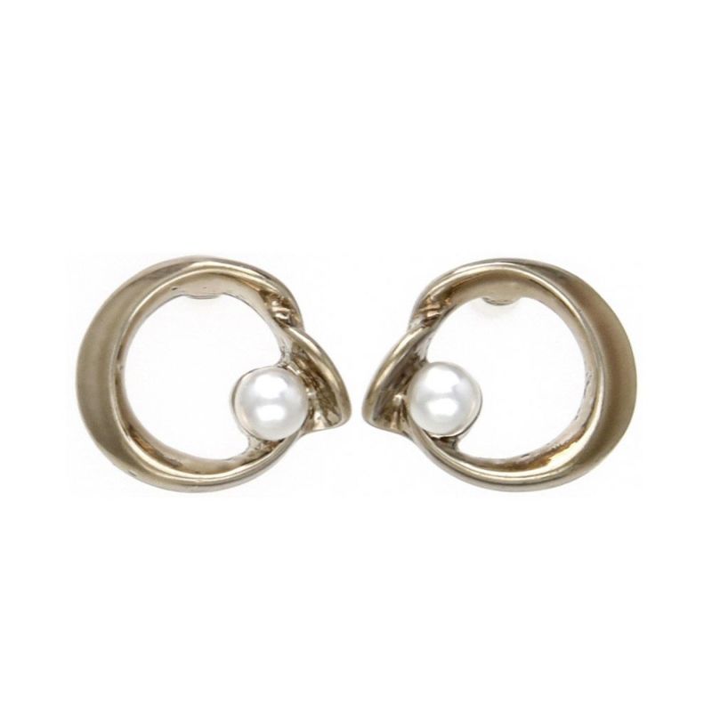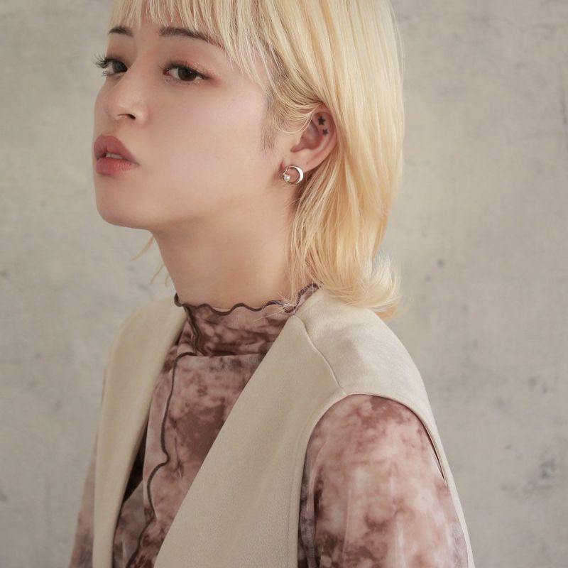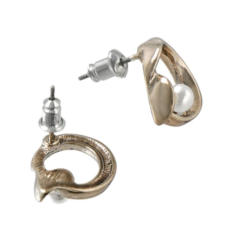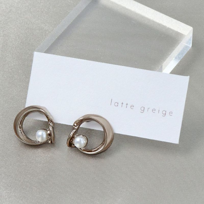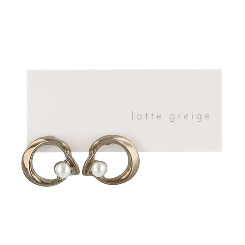 ピアス ニッケルフリー ラテグレージュ パール ツイスト サークル チタンポスト スタッドピアス