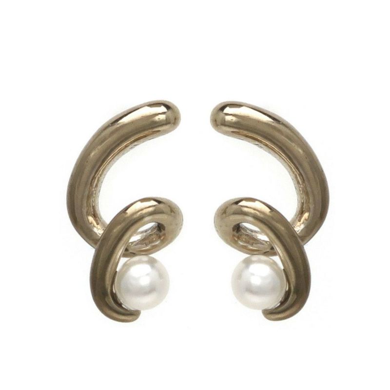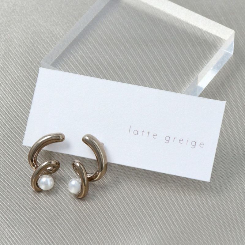 ピアス ニッケルフリー ラテグレージュ パール ツイスト ライン チタンポスト スタッドピアス