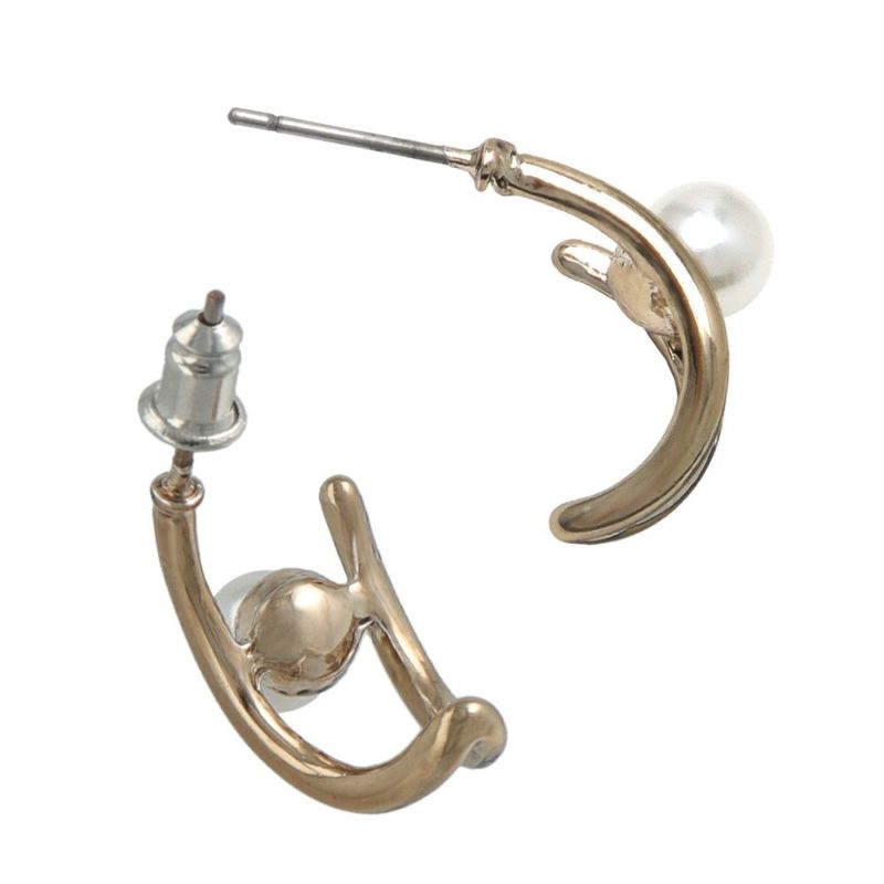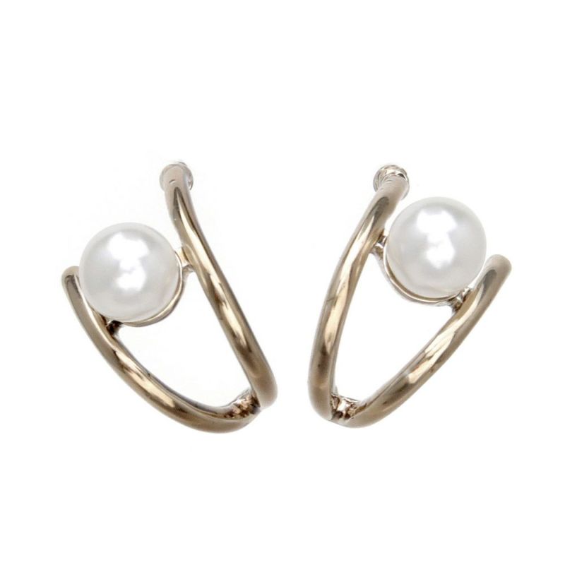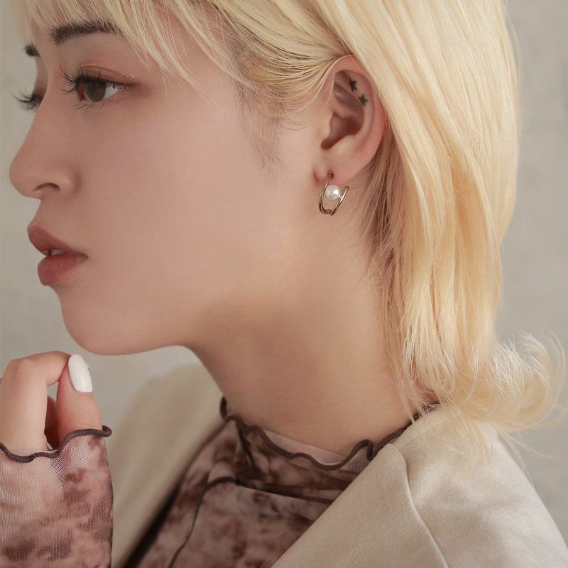 ピアス ラテグレージュ パール ダブルライン チタンポスト C型 スタッドピアス