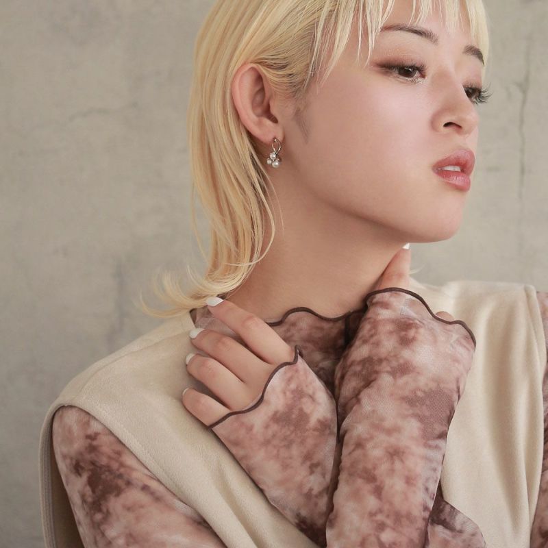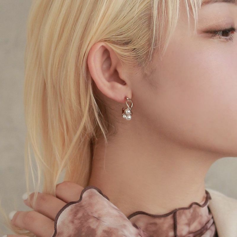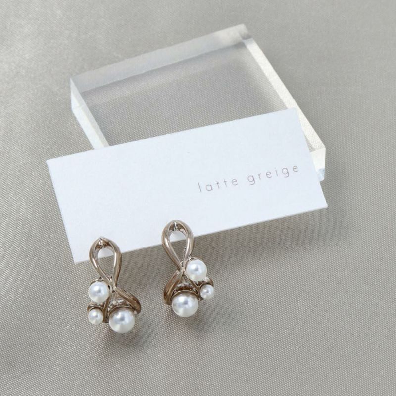 ピアス ラテグレージュ パール クロス バブル チタンポスト C型 スタッドピアス