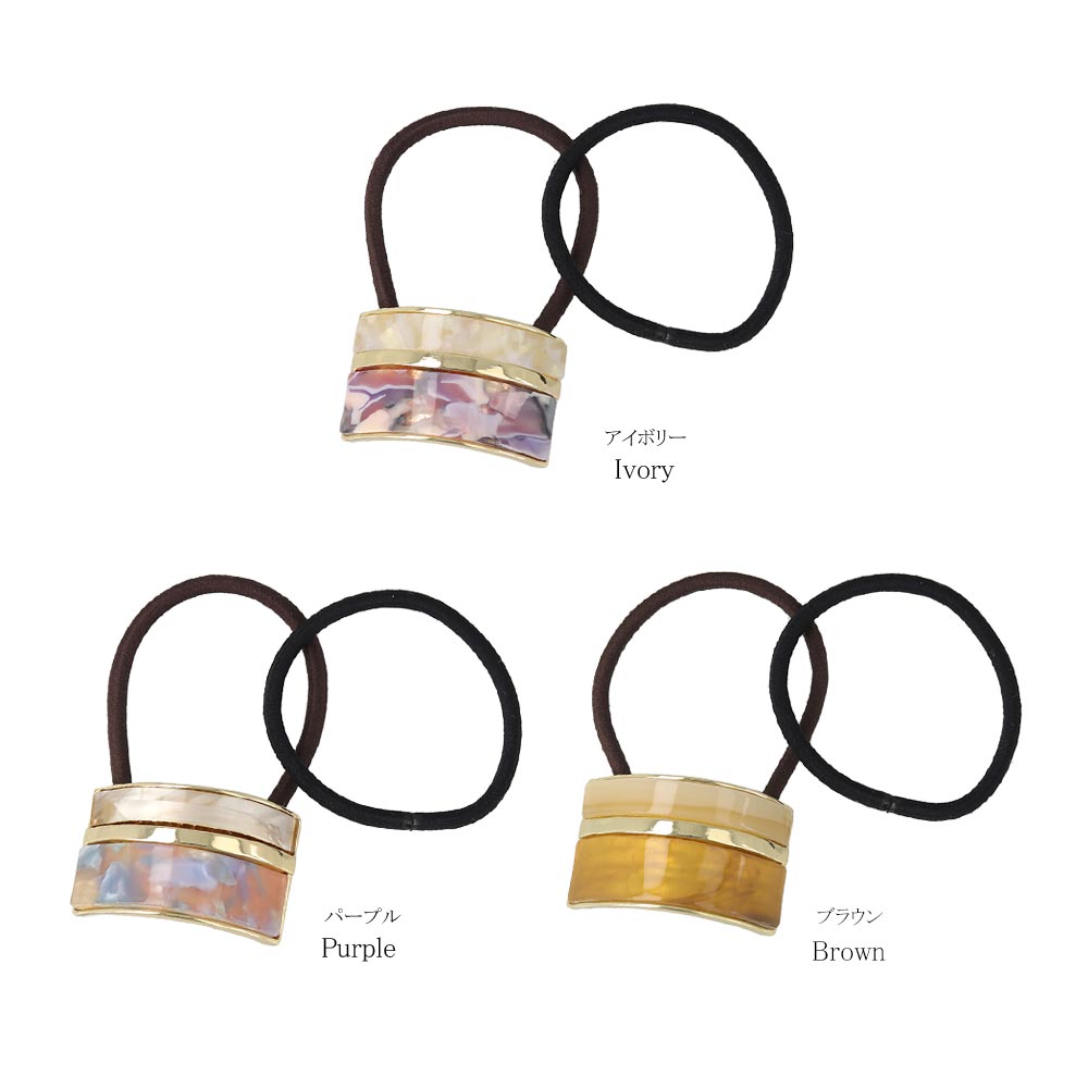ヘアゴム tsukekae pony マーブル 樹脂 メタル ライン レクタングル ヘアゴム2本付き(ブラウン/ブラック)