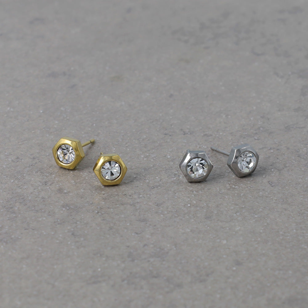 ピアス ヘキサゴン ストーン ステンレス スタッドピアス