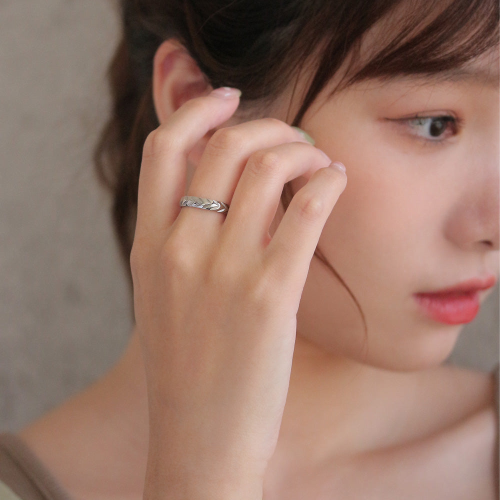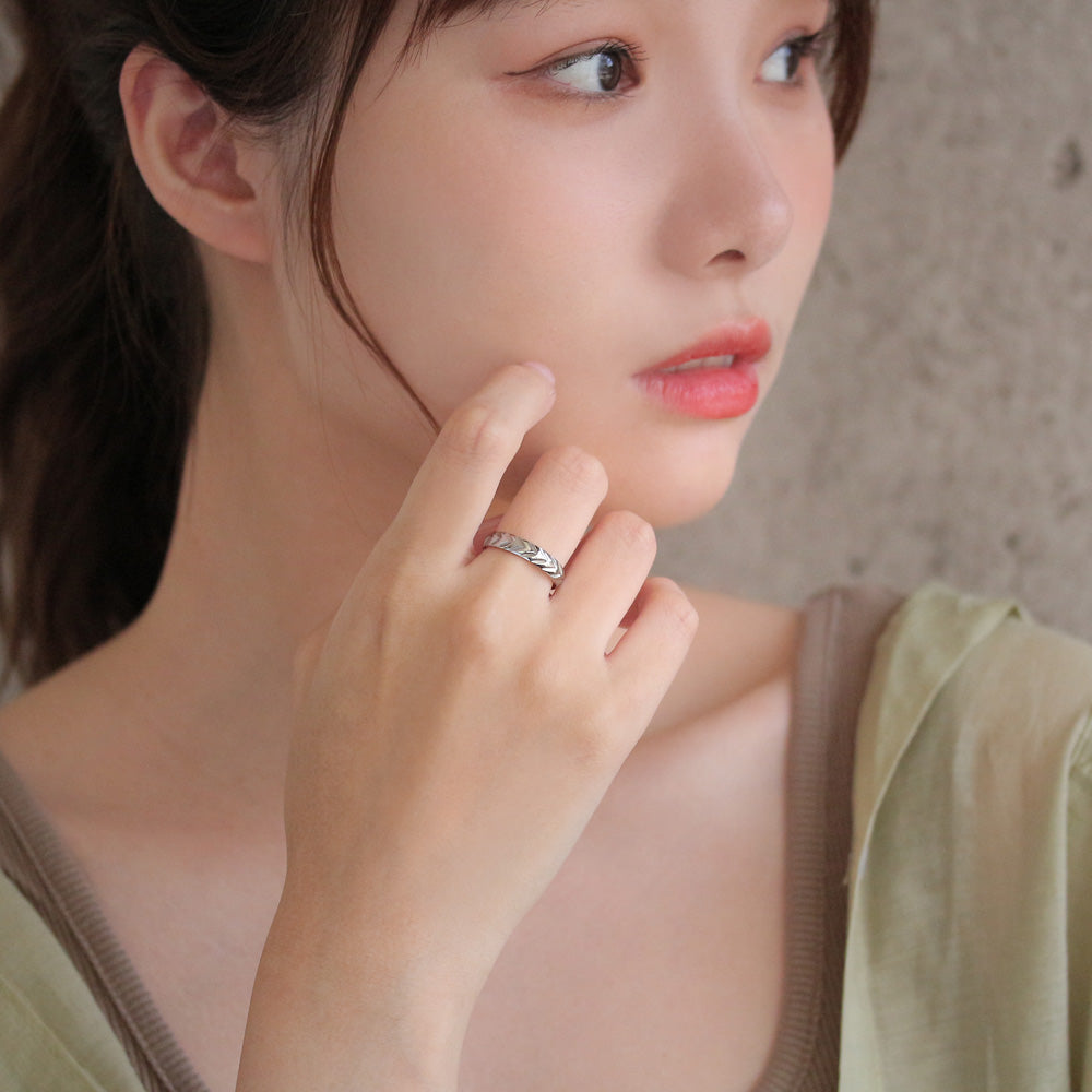 どんなスタイルにもさらっと身に着けてなじむデザインのリングは、ほどよい存在感でレイヤードにも◎