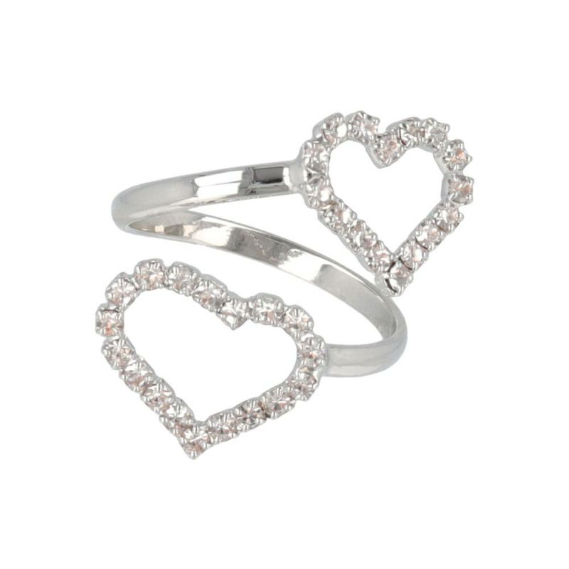 リング ニッケルフリー ダブル ハート ストーン フリーサイズ 指輪