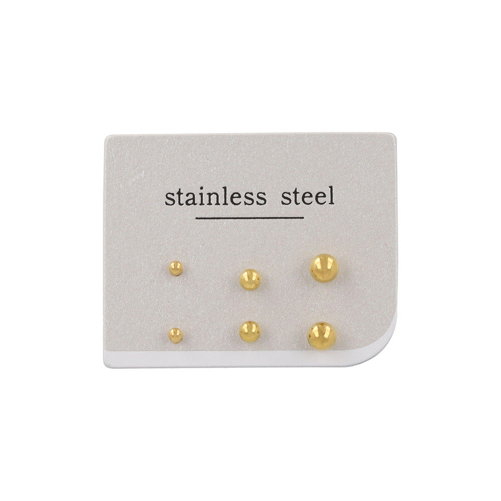 サイズの異なるメタルボールのセットピアス。気分に合わせて自由に組み合わせが楽しめる、お得な6個セットです。
