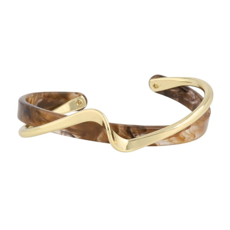 ブレスレット ニッケルフリー マーブル 樹脂 ウェーブ メタル ハーフバングル
