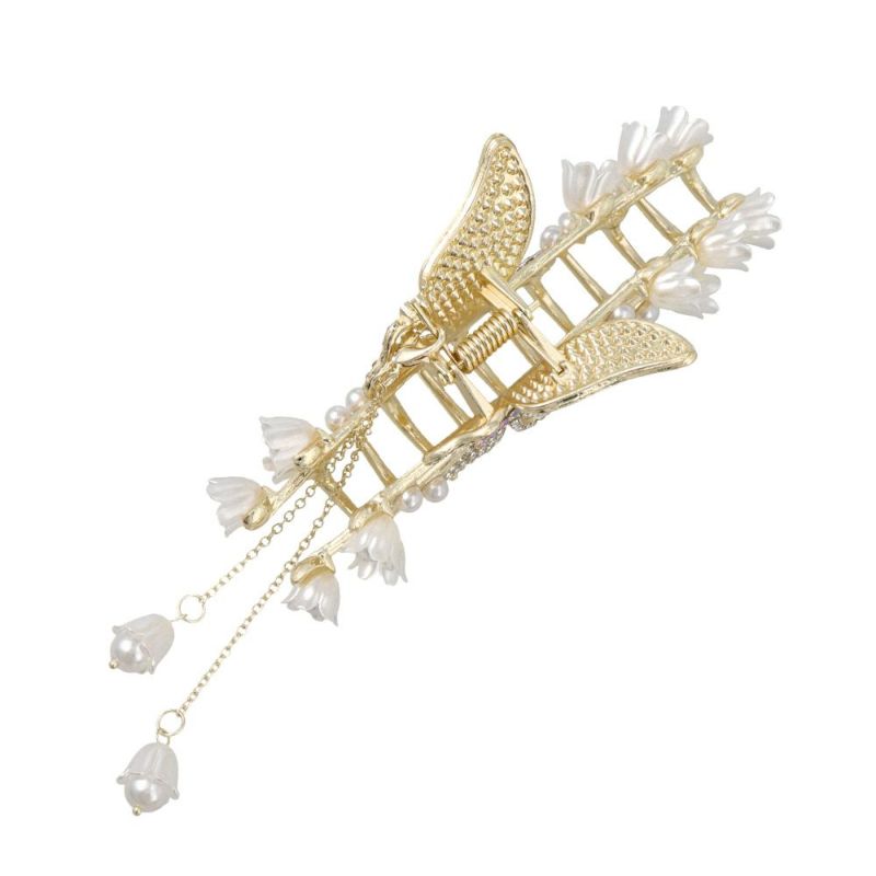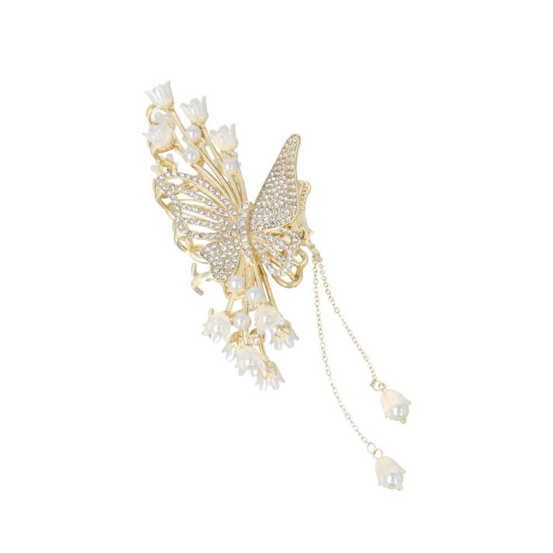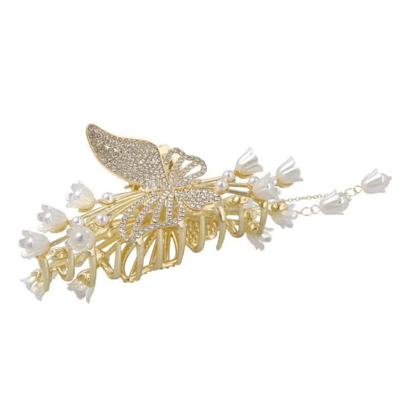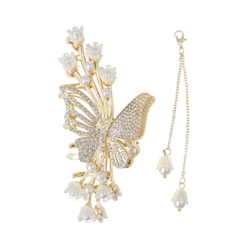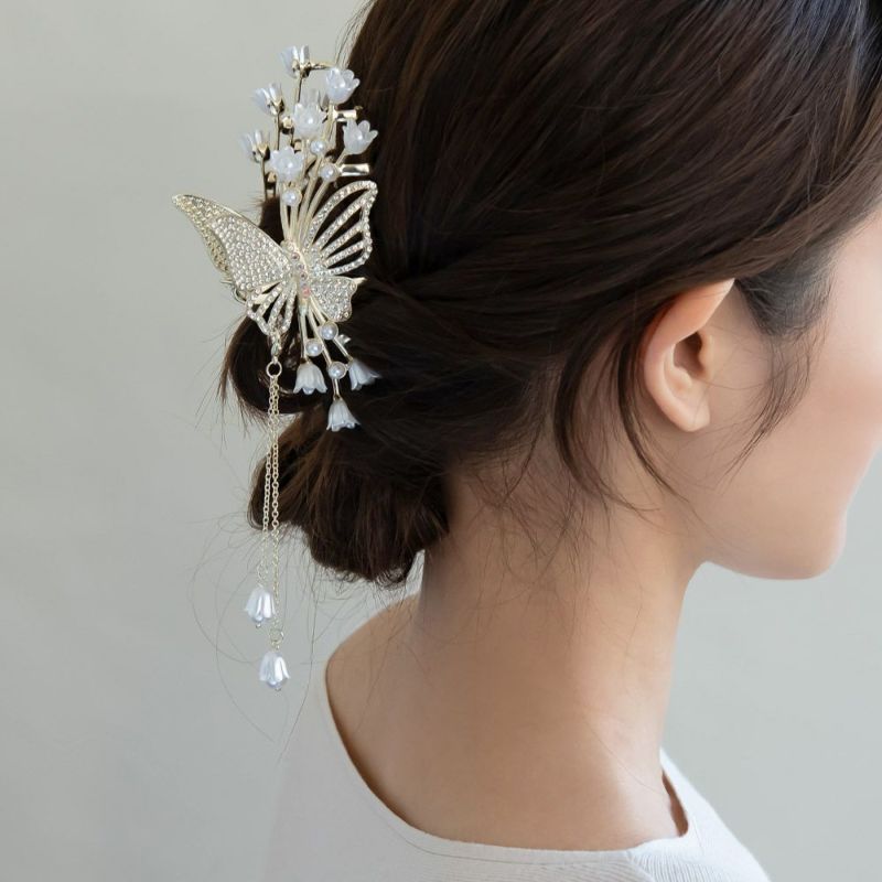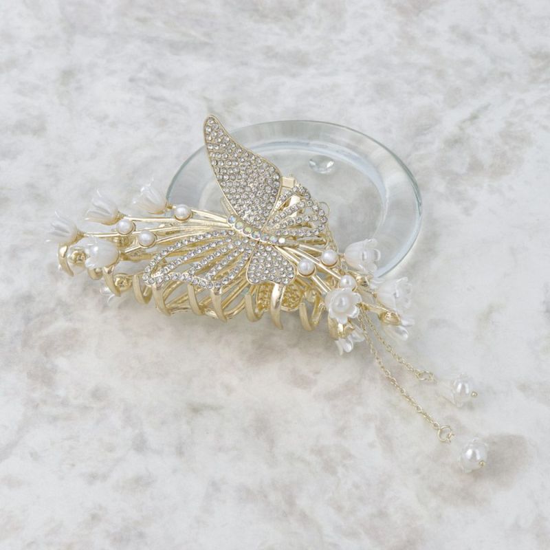 ヘアクリップ 蝶 バタフライ フラワー ストーン パール チャーム付き メタル バンスクリップ