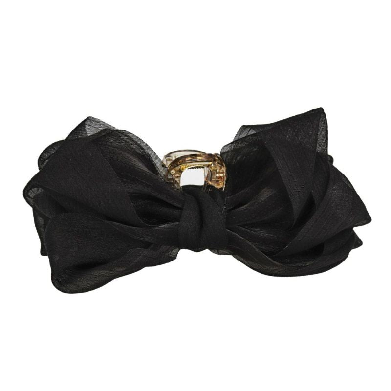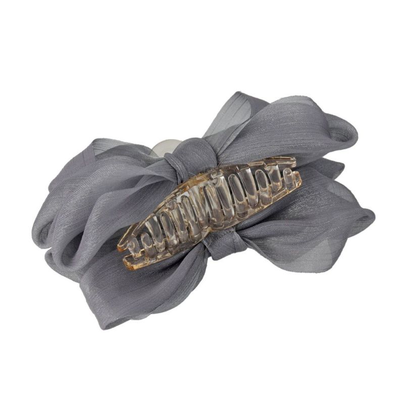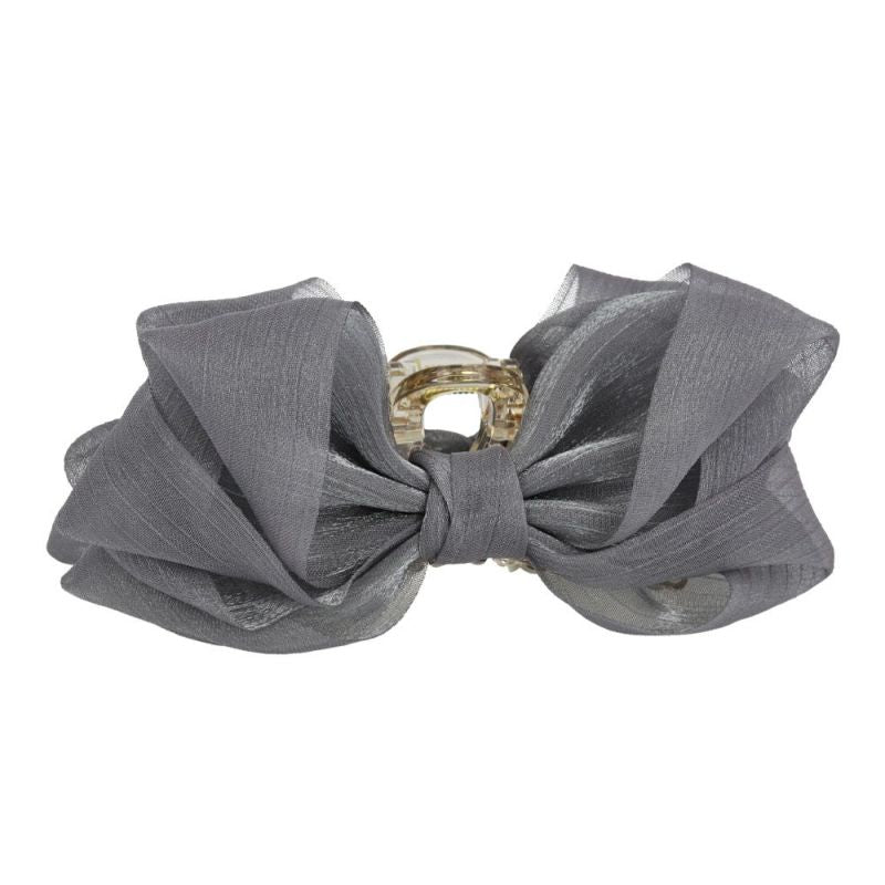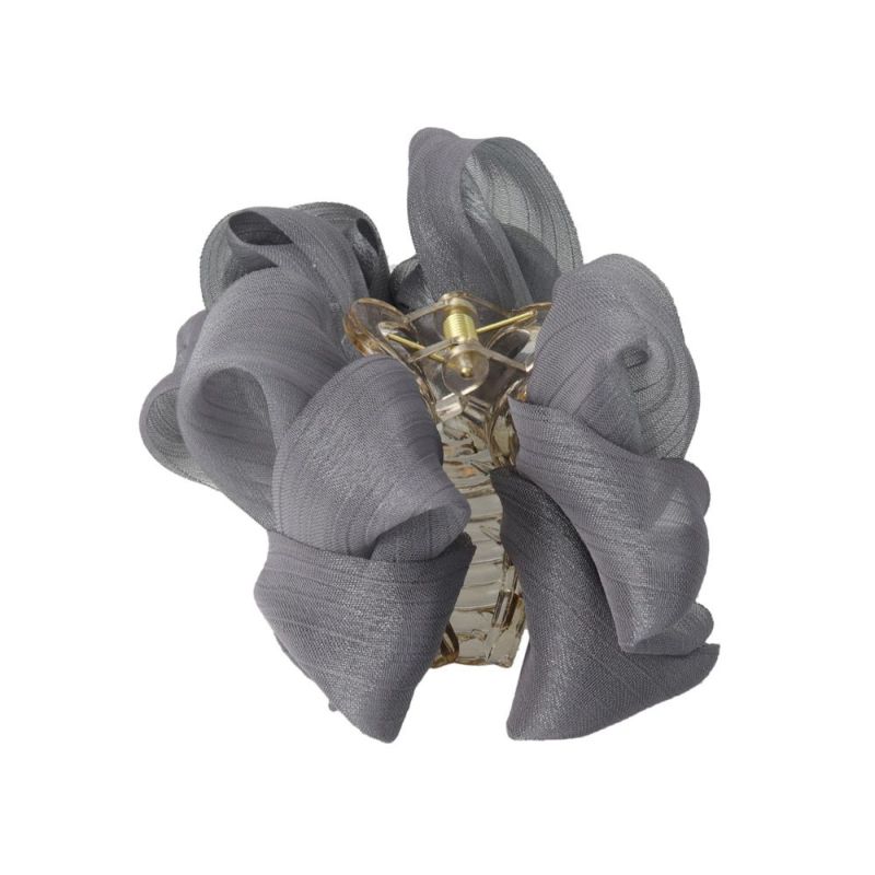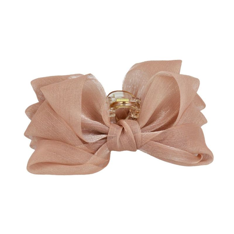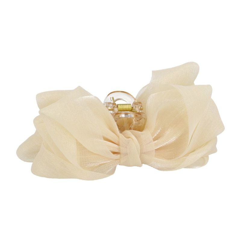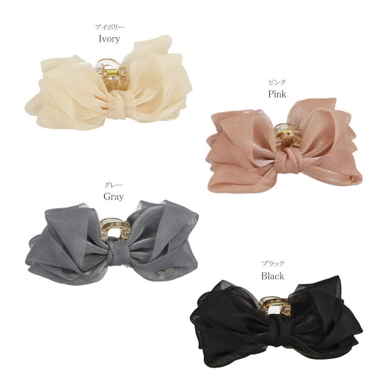 bs0485ほんのりシマーな透け感リボンのヘアクリップ。ラフにまとめてお洒落なニュアンスに、韓国風スタイルも叶うボリューム感あるジッケピン。