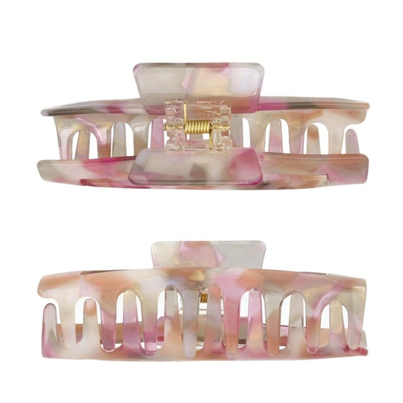 ヘアクリップ 偏光オーロラ マーブル アクリル 樹脂 レクタングル バンスクリップ