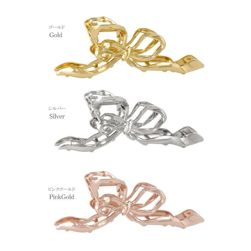 ヘアクリップ リボン メタル ビッグサイズ バンスクリップ